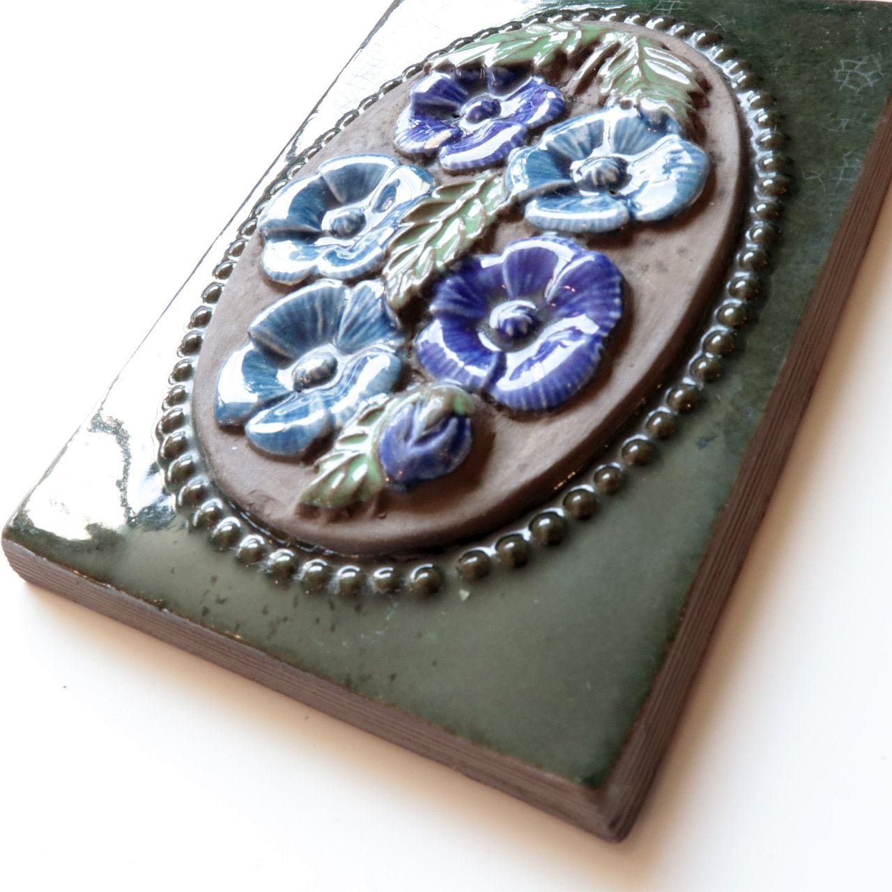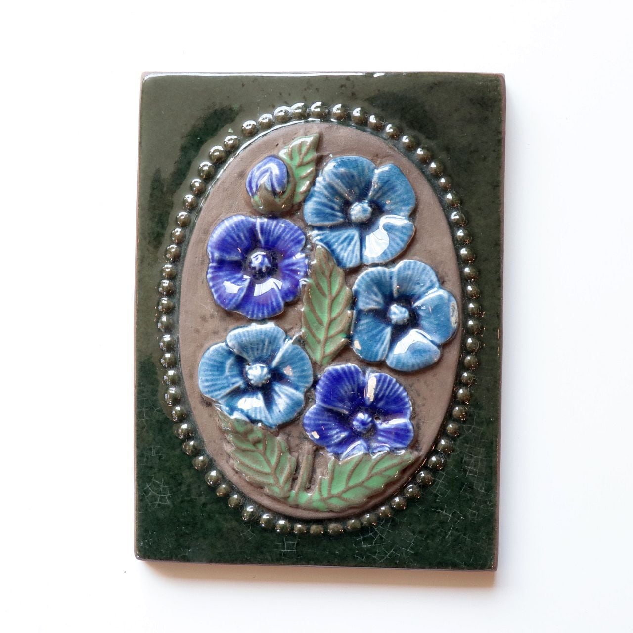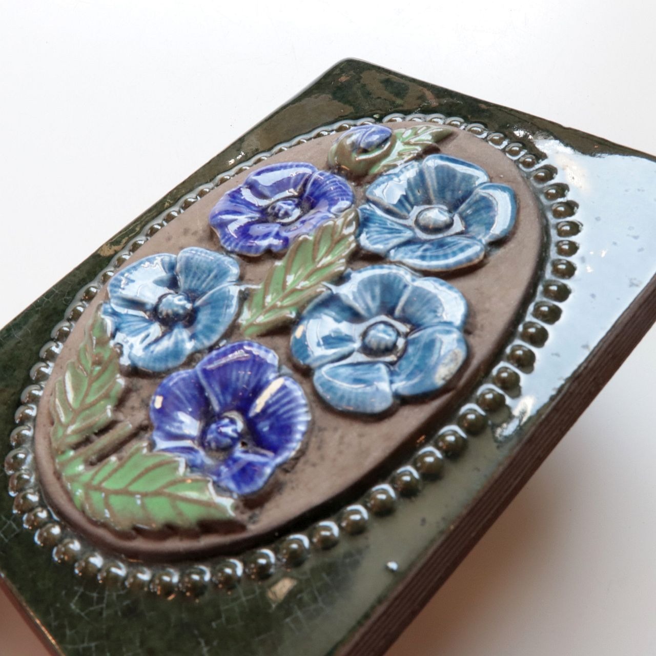 【c8034】青い花の陶板(15.5㎝)* [Jie gantofta / Sweden]