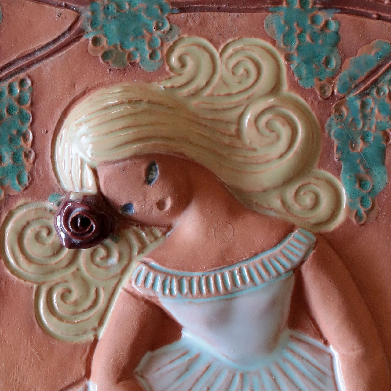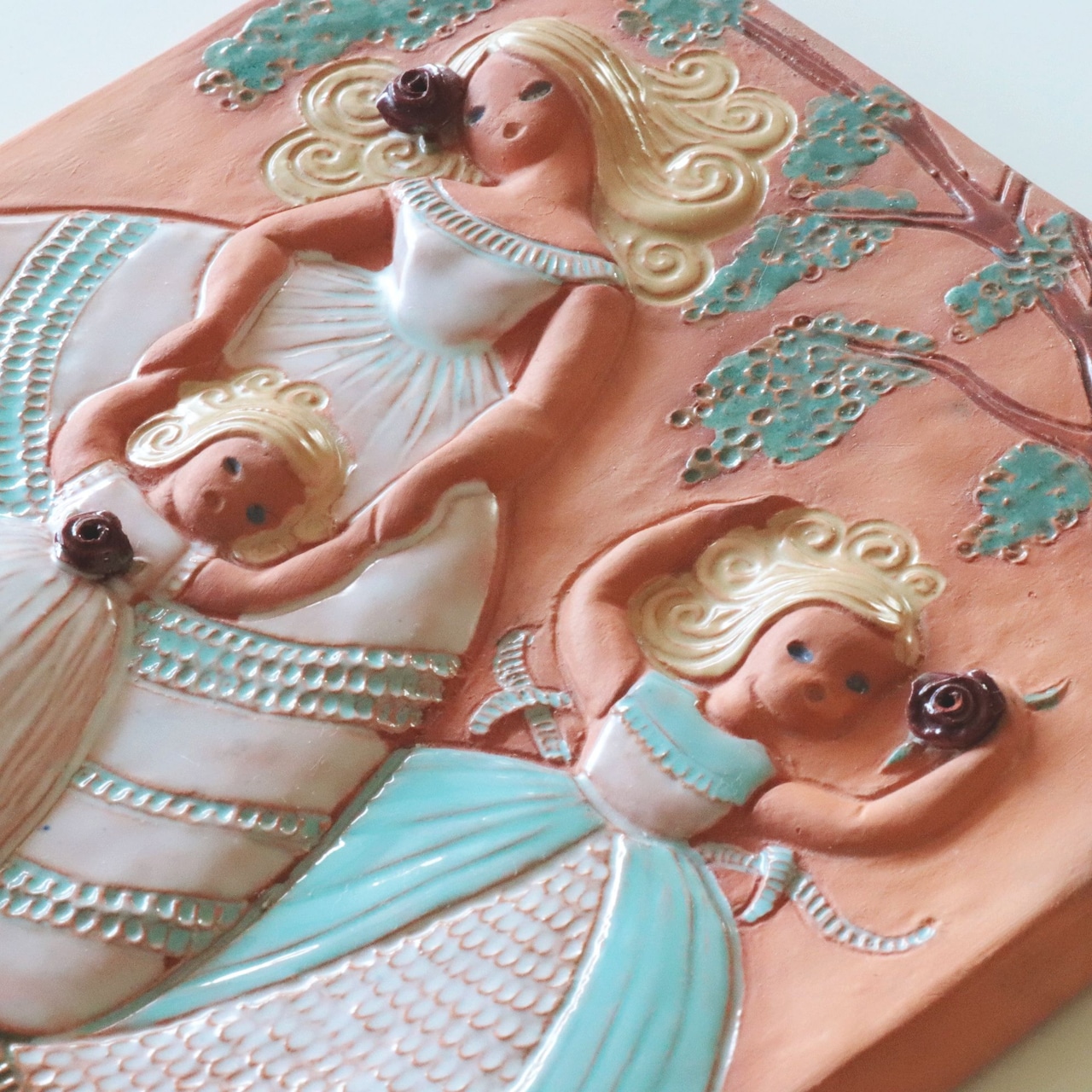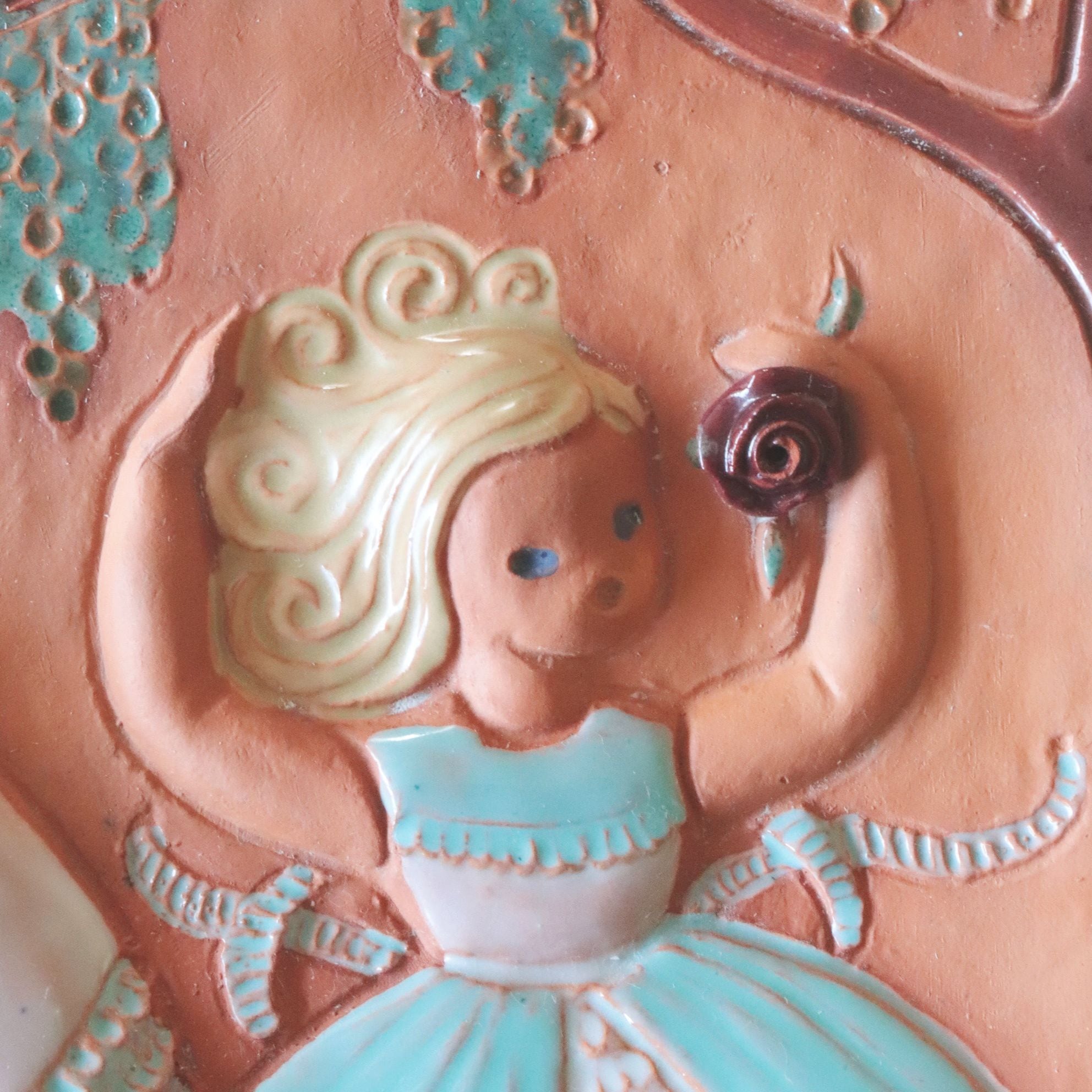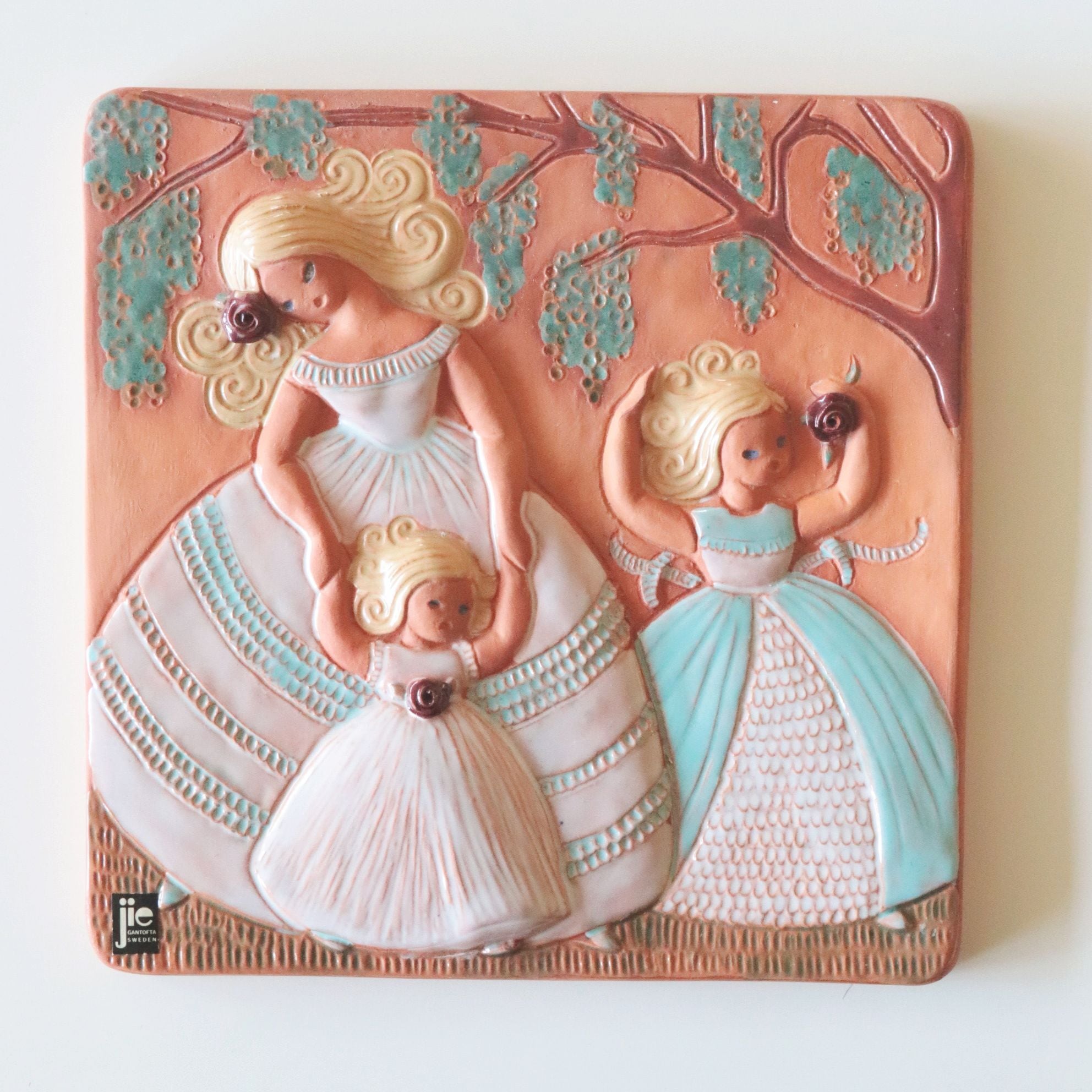【c8039】薔薇と少女の陶板(23㎝) [Jie Gantofta/Sweden]