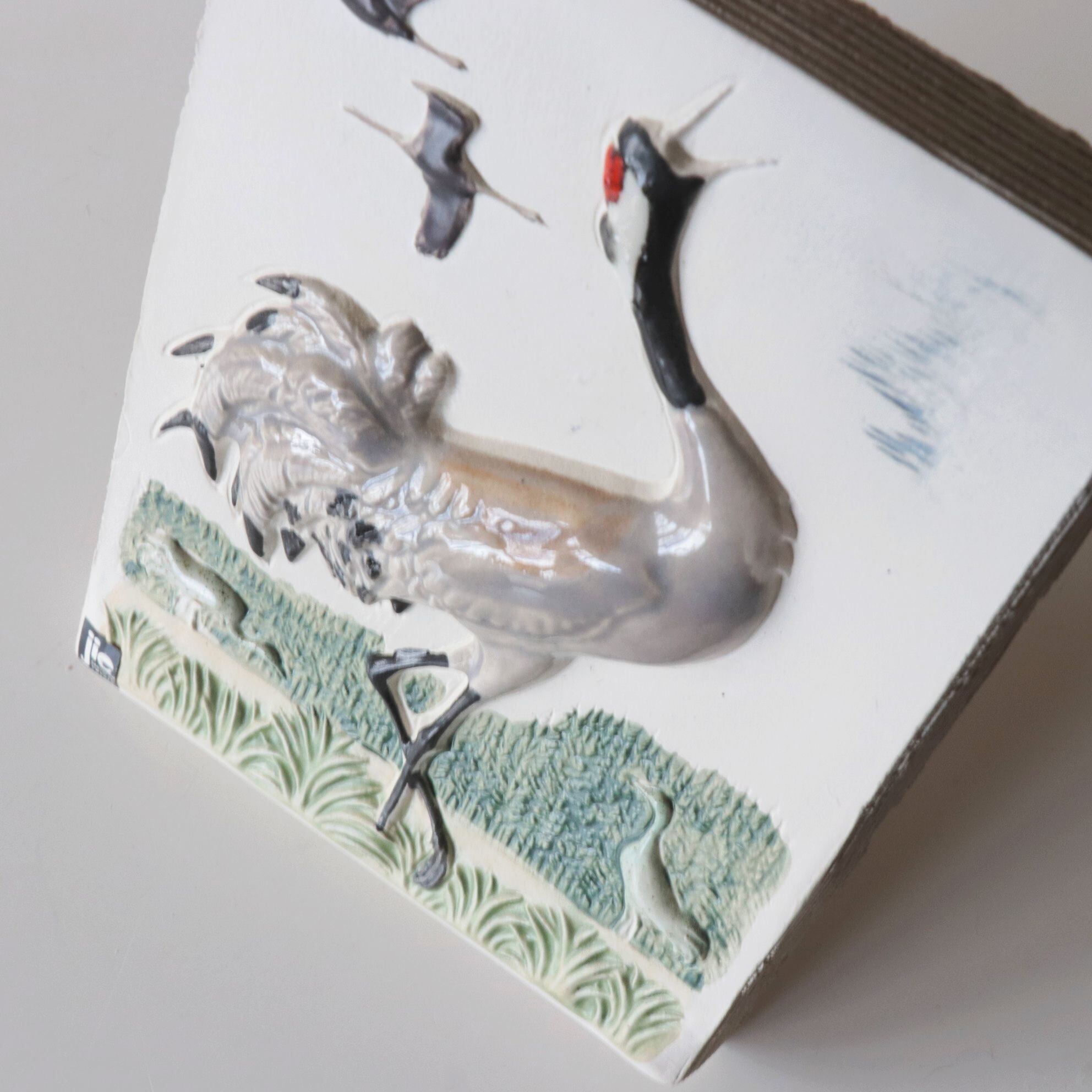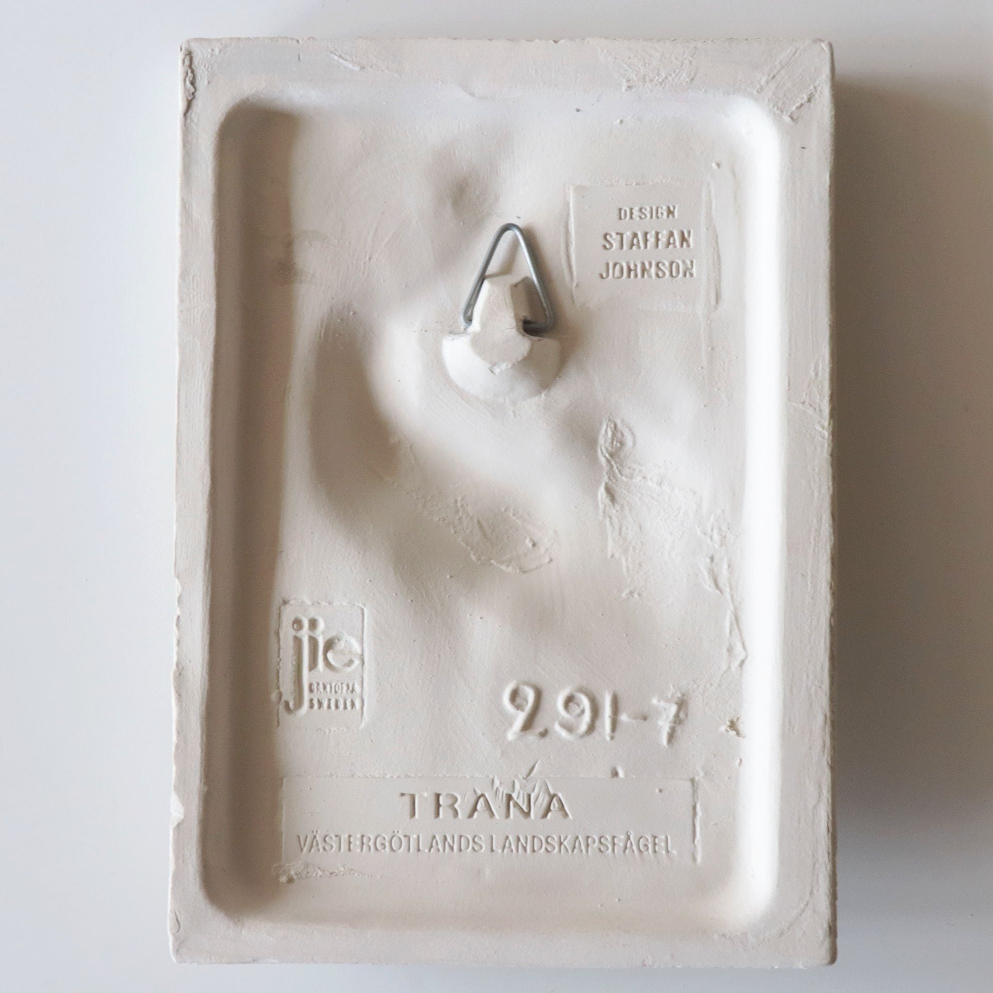こちらは「ツル」を描いた作品。スウェーデン各地に住む野鳥を描いたシリーズで、同社創業者の息子であり、鳥類学者でもあったStaffan Johnsonが手掛けたシリーズとなります。背面は壁掛けが出来るように金具が付いています。
