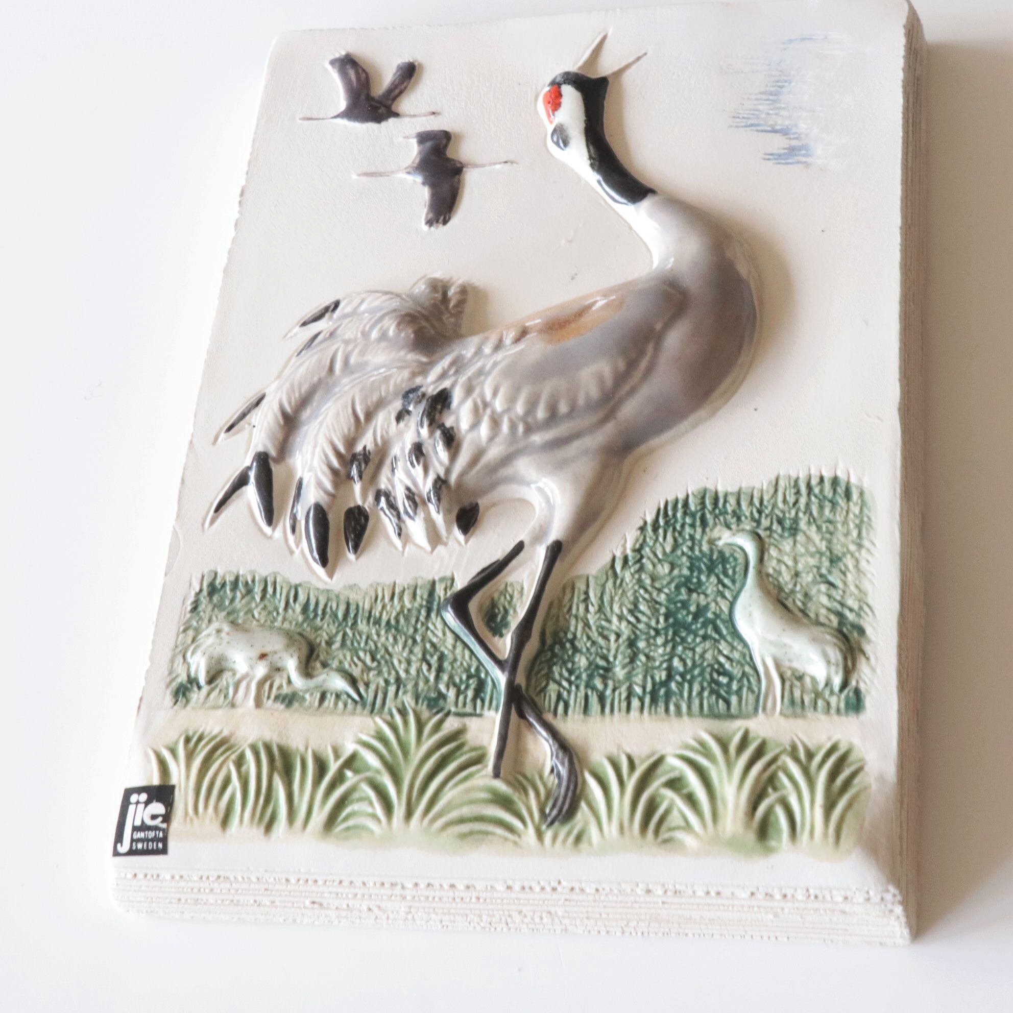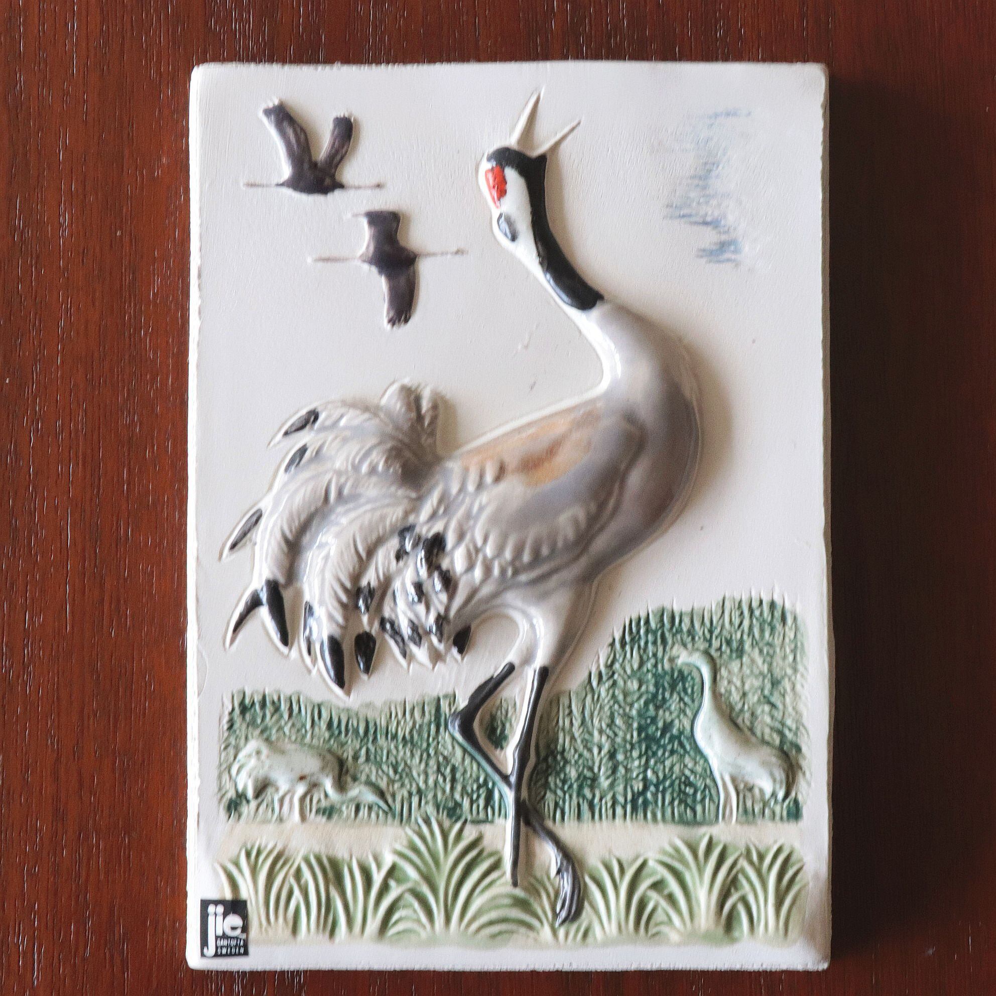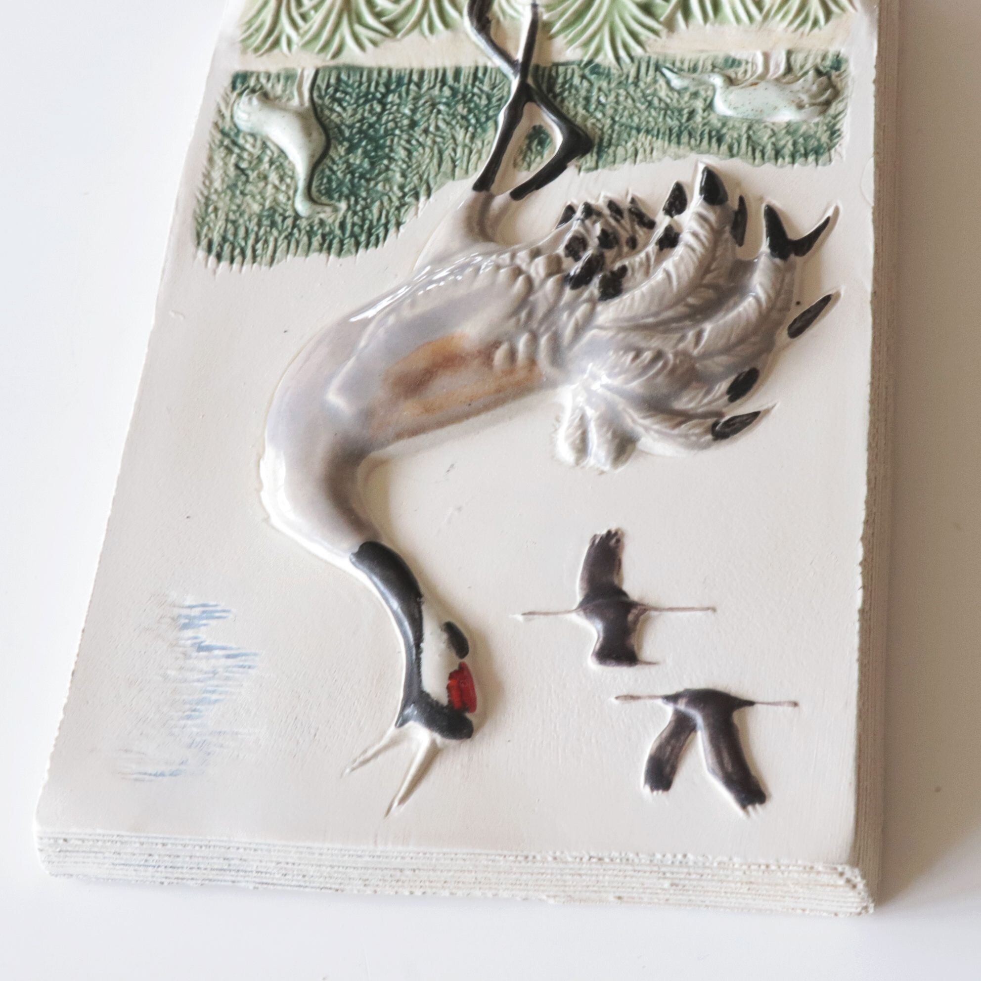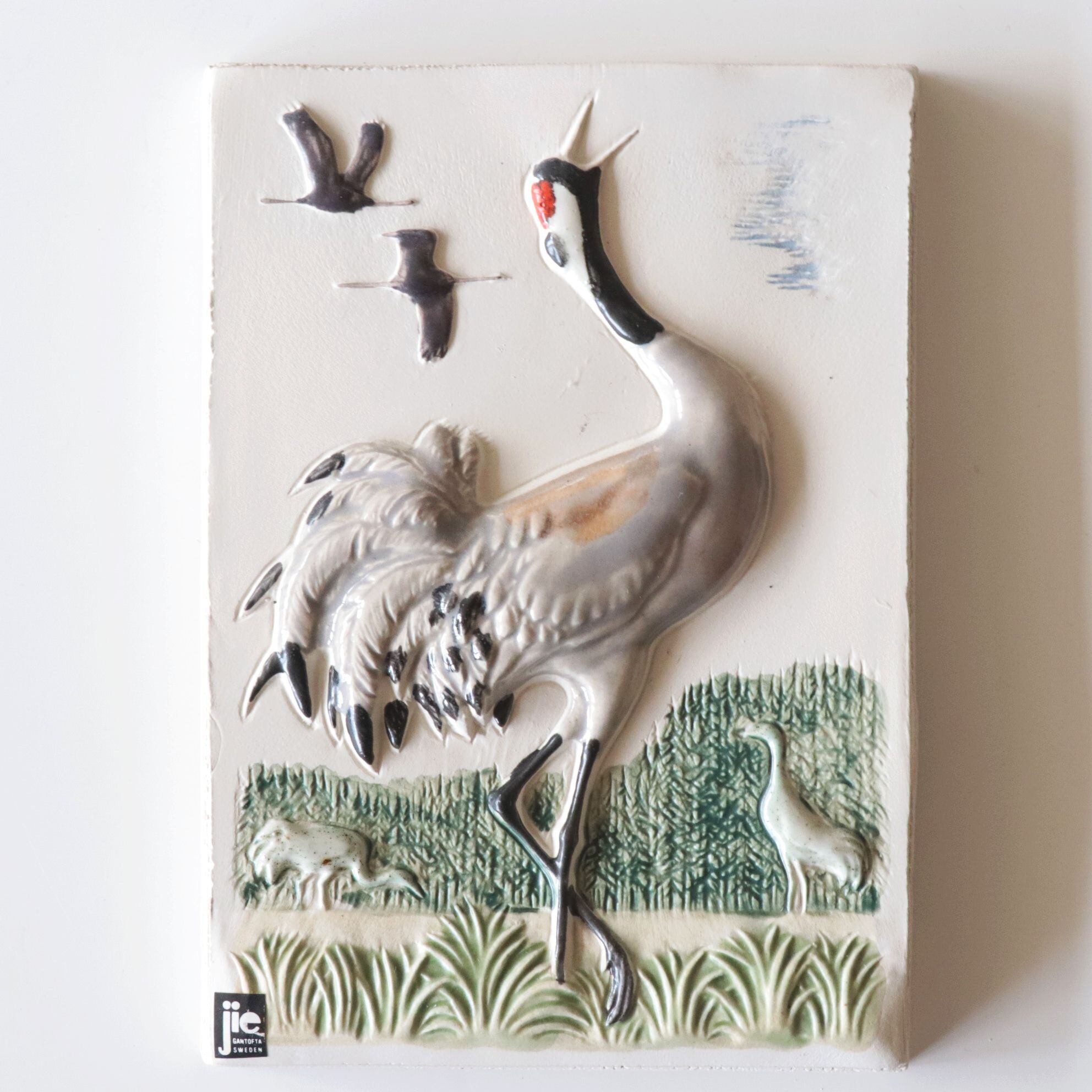 【c8046】ツルの陶板 (15.5cm) [Jie Gantofta / Sweden]