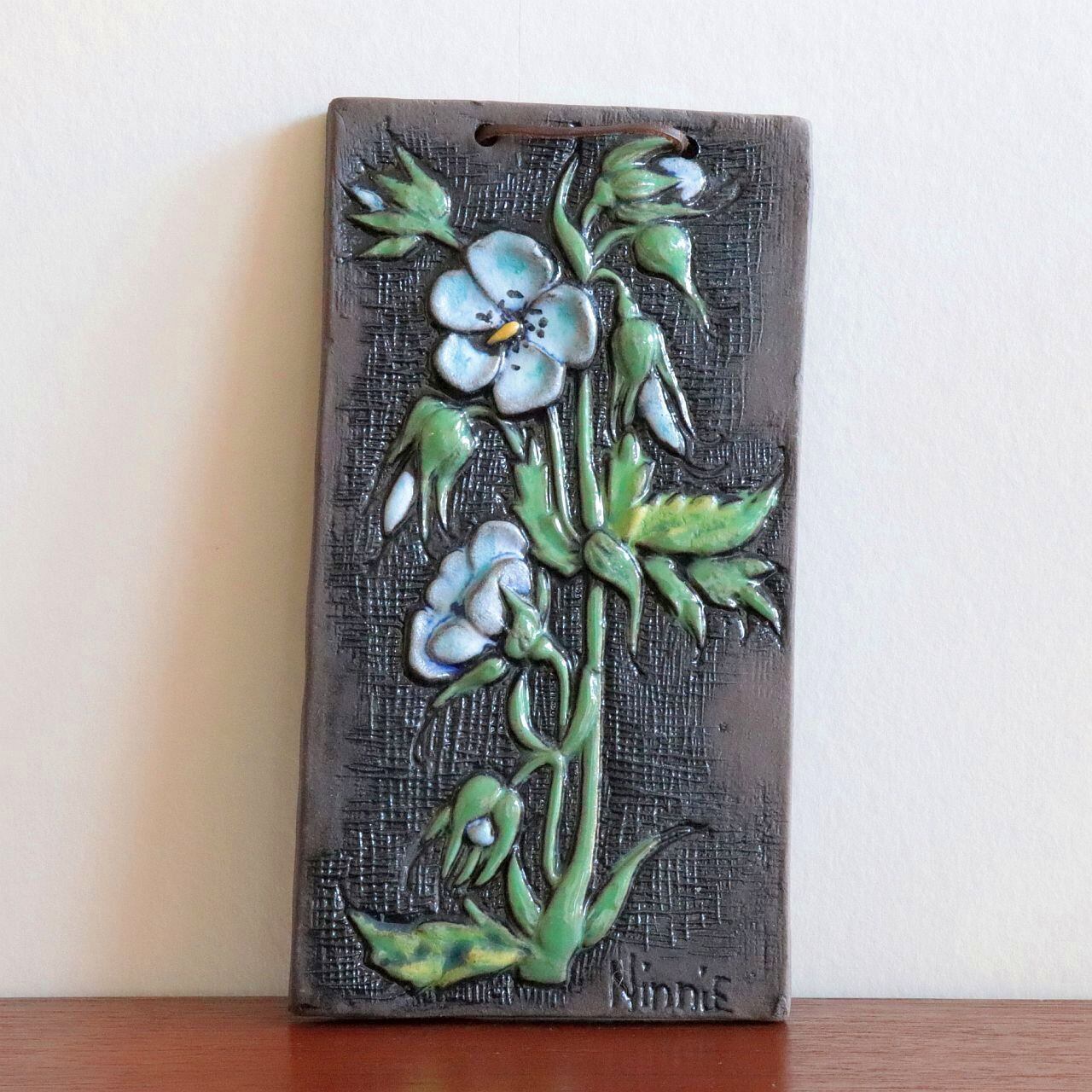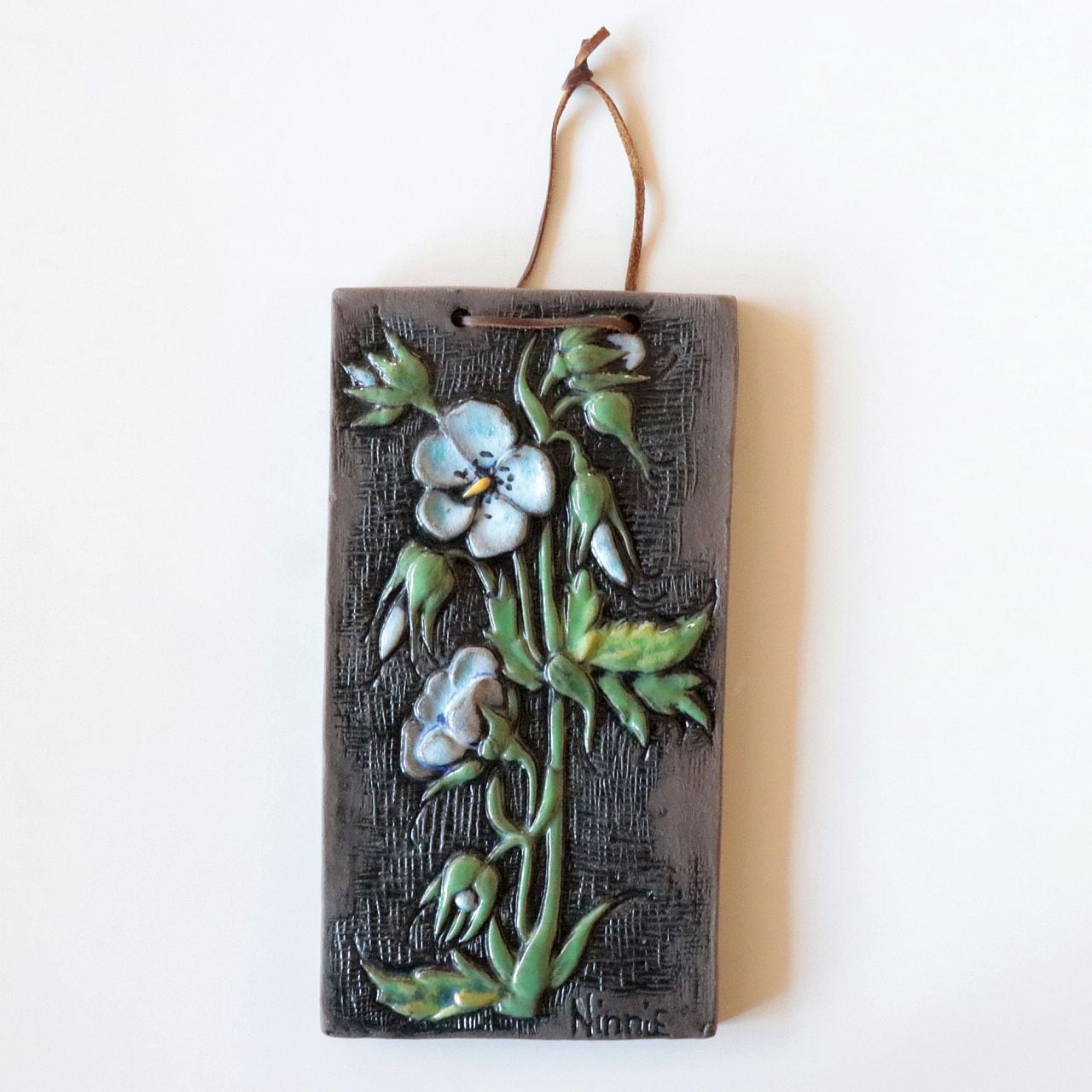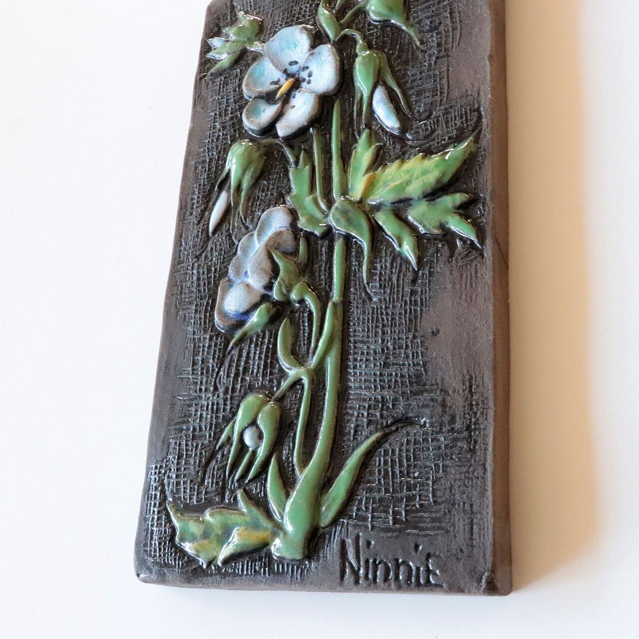 【c8055】花の陶板(23㎝) [Bromma Keramik / Sweden]