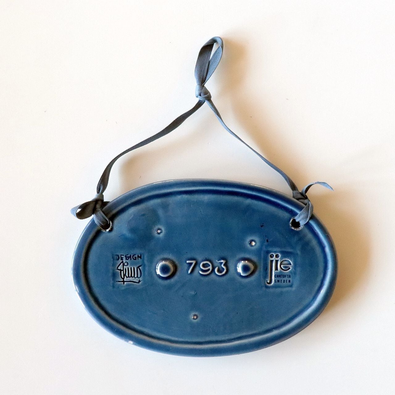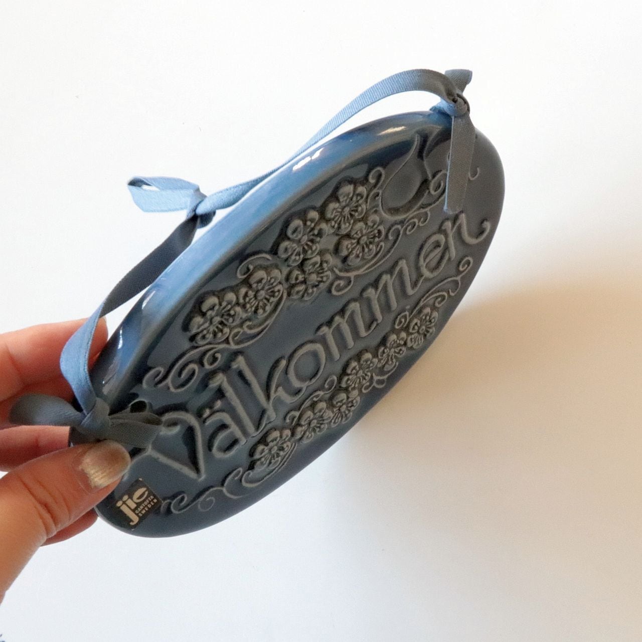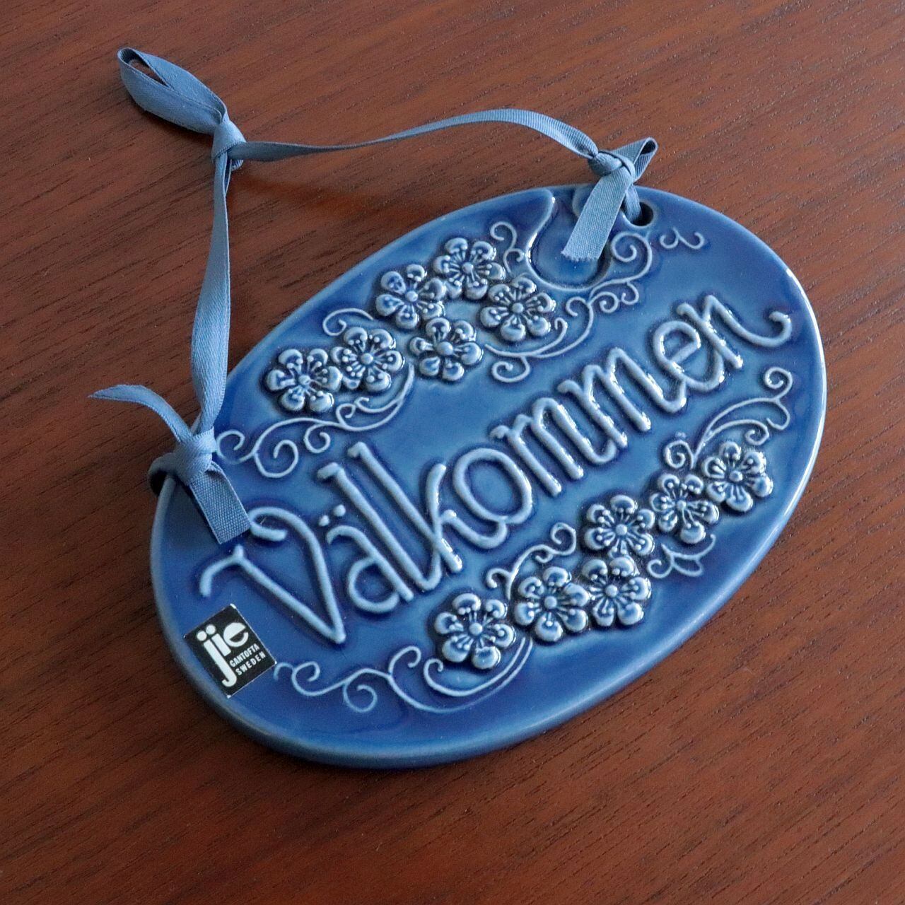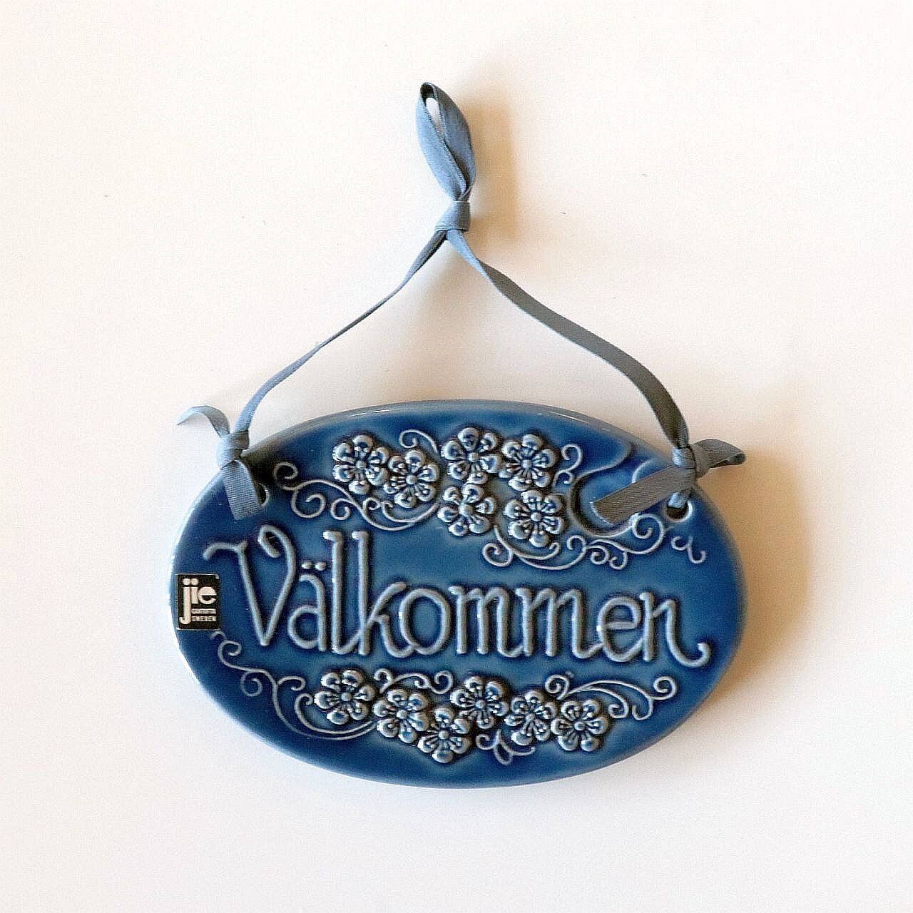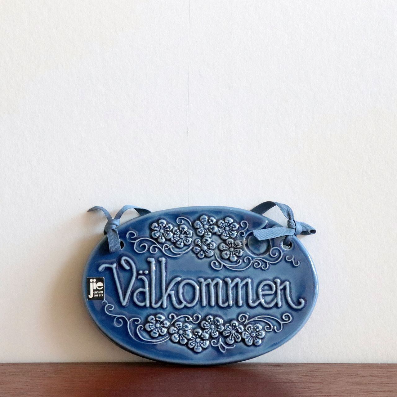 書かれた「Välkommen」はスウェーデン語で「Welcome」を意味します。玄関やお部屋の入口に掛けられることが多かったように思います。同じモチーフの陶板ではハート形、長方形のデザインも製作されていたようです。