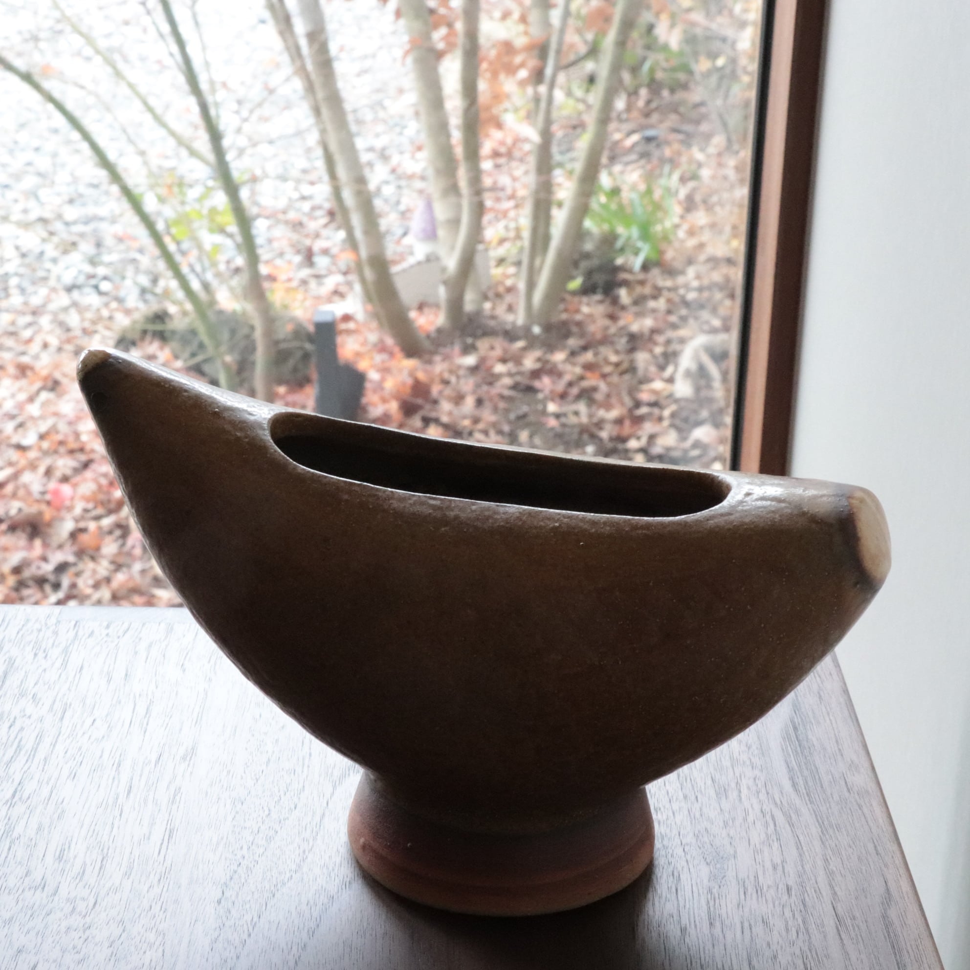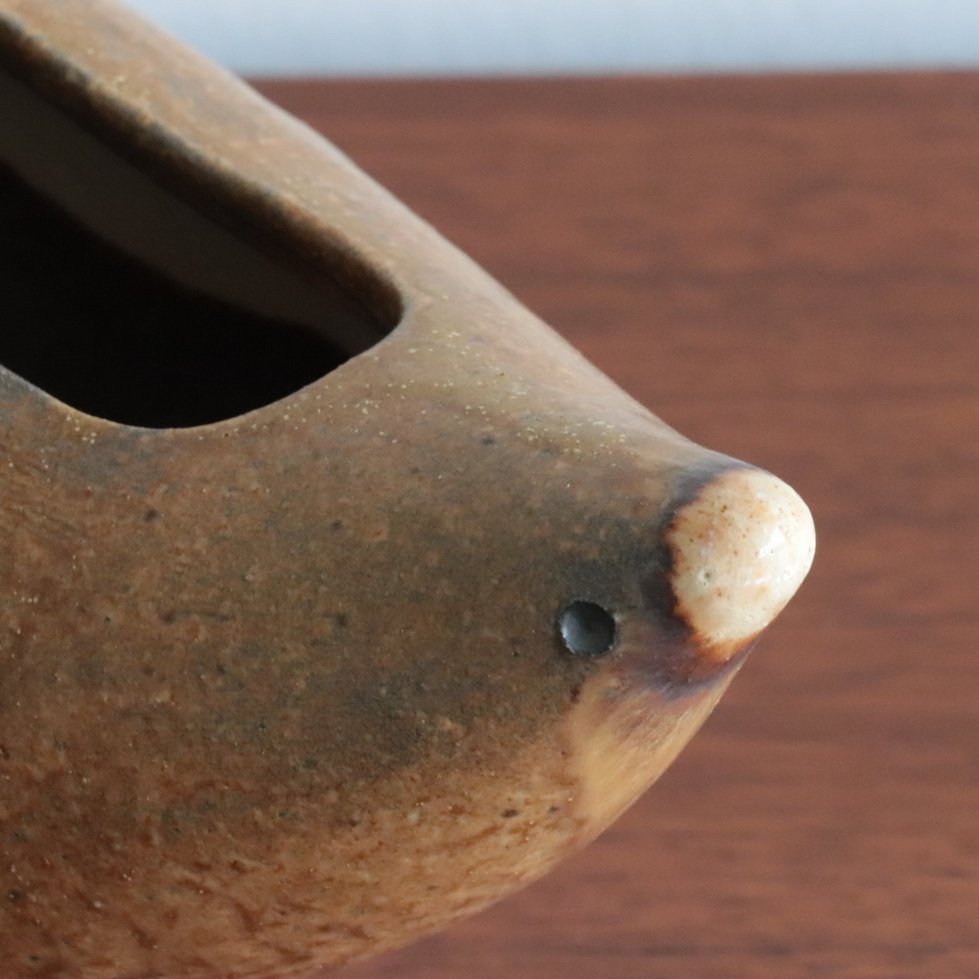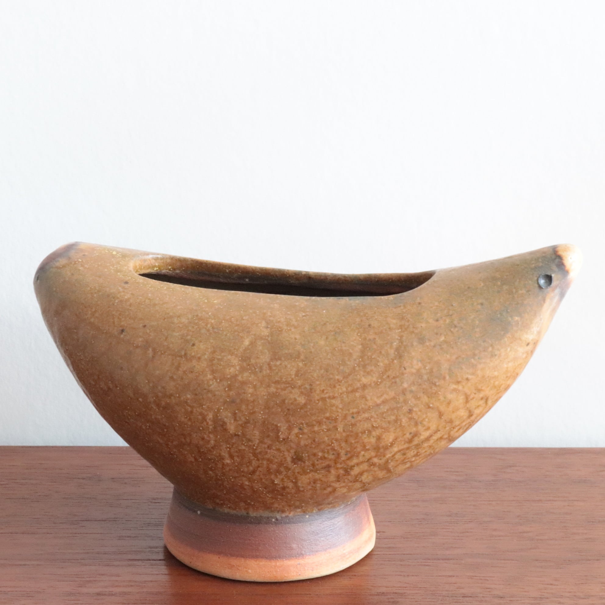 鳥のかたちをした陶器のボウル/ベース。 丸みのあるフォルムと素朴な釉薬が、どこか親しみやすく、見る人の心を和ませます。 オブジェとしても、花器や小物入れとしても楽しめる、暮らしにやさしく寄り添う一点です。