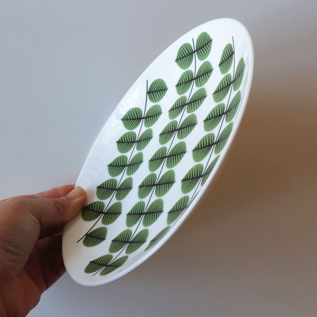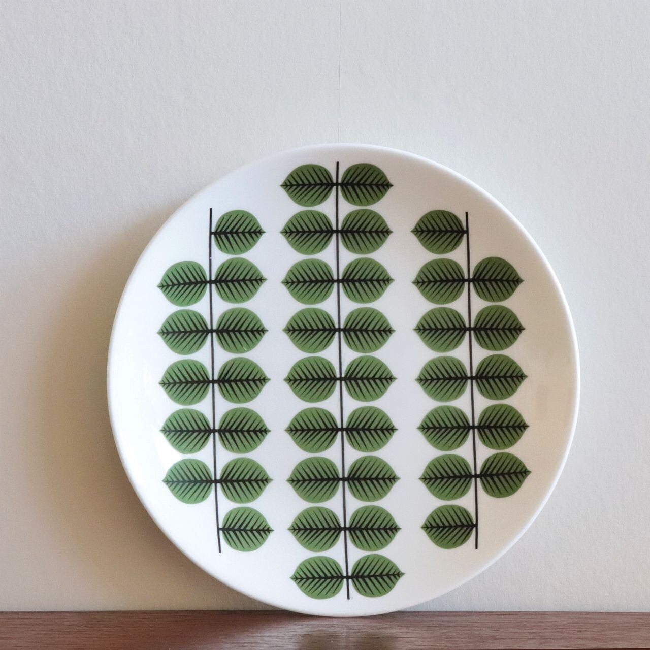 スウェーデンの陶磁器ブランド Gustavsberg(グスタフスベリ) を代表するシリーズ「Berså(ベルサ/べショー)」。 Bersaはスウェーデン語で『木陰の休憩所』を意味しており、柔らかな日差しを感じるデザインとなります。デザイナー Stig Lindberg(スティグ・リンドベリ) によって1960年代に発表された名作です。鮮やかな緑の葉が繰り返し並ぶデザインは、北欧モダンの象徴として世界中で愛されてきました。