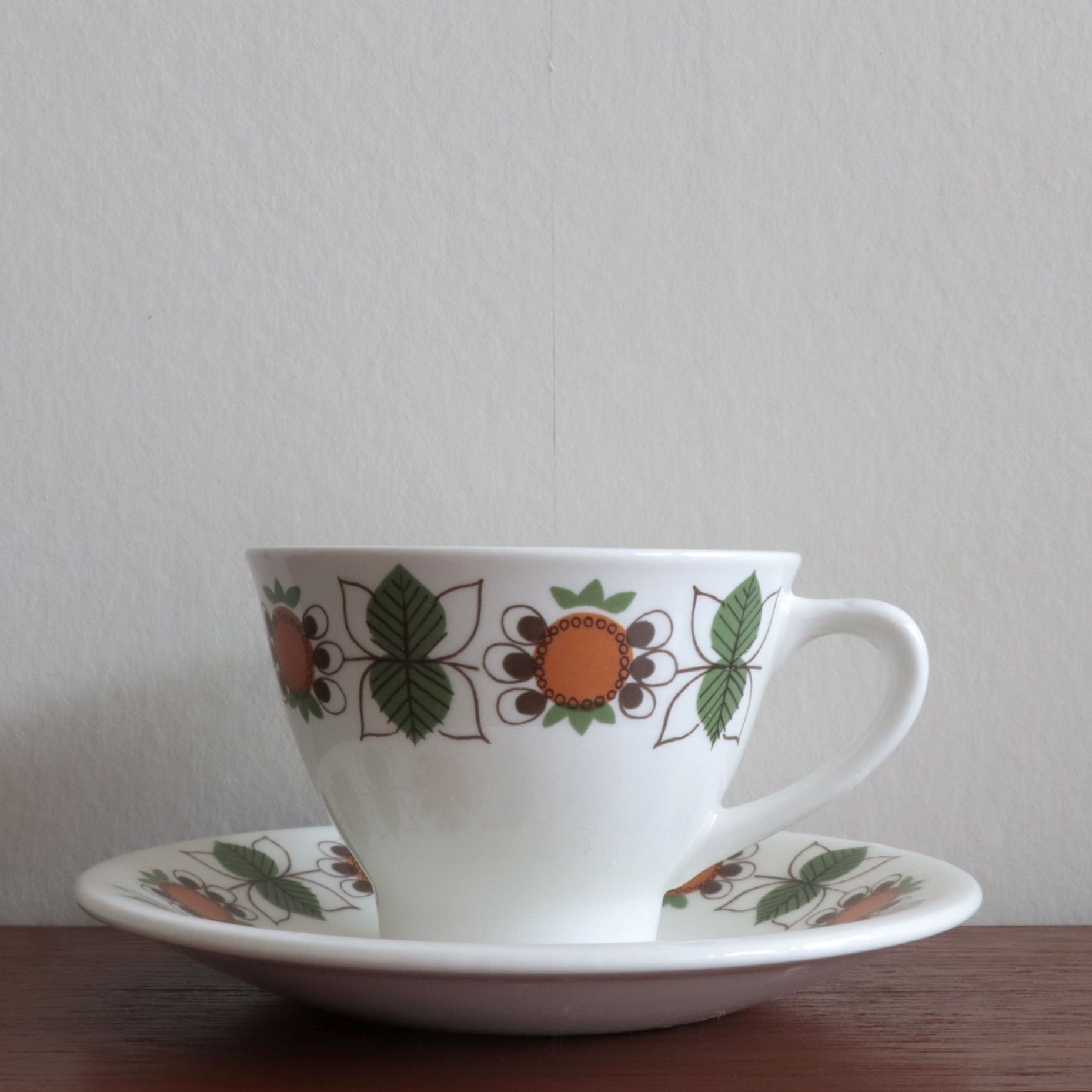 ノルウェーのFiggjo Flint社で製作されたカップ&ソーサー。1970年代頃のものとなります。