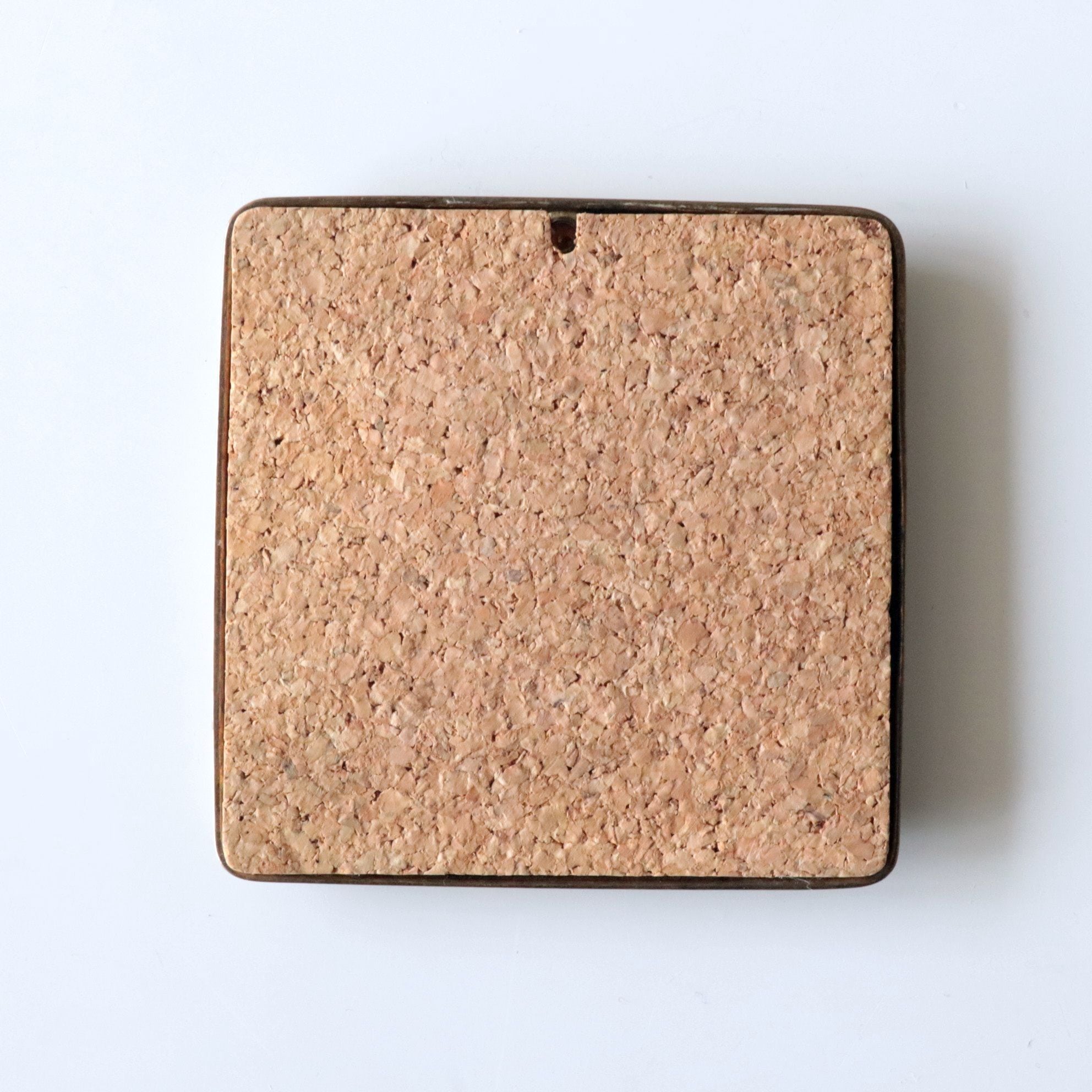 裏面にはコルクが貼られており、テーブルを傷つけにくい仕様。コースターとしてはもちろん、小さなトレイや壁掛け装飾としても楽しめるアイテムです。