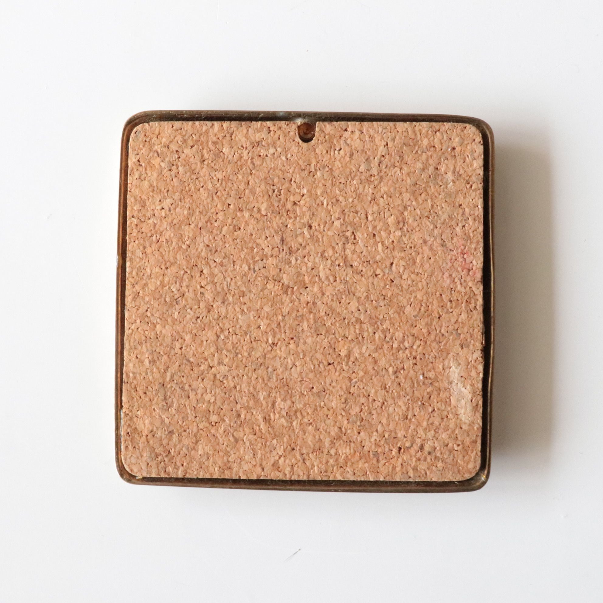 裏面にはコルクが貼られており、テーブルを傷つけにくい仕様。コースターとしてはもちろん、小さなトレイや壁掛け装飾としても楽しめるアイテムです。