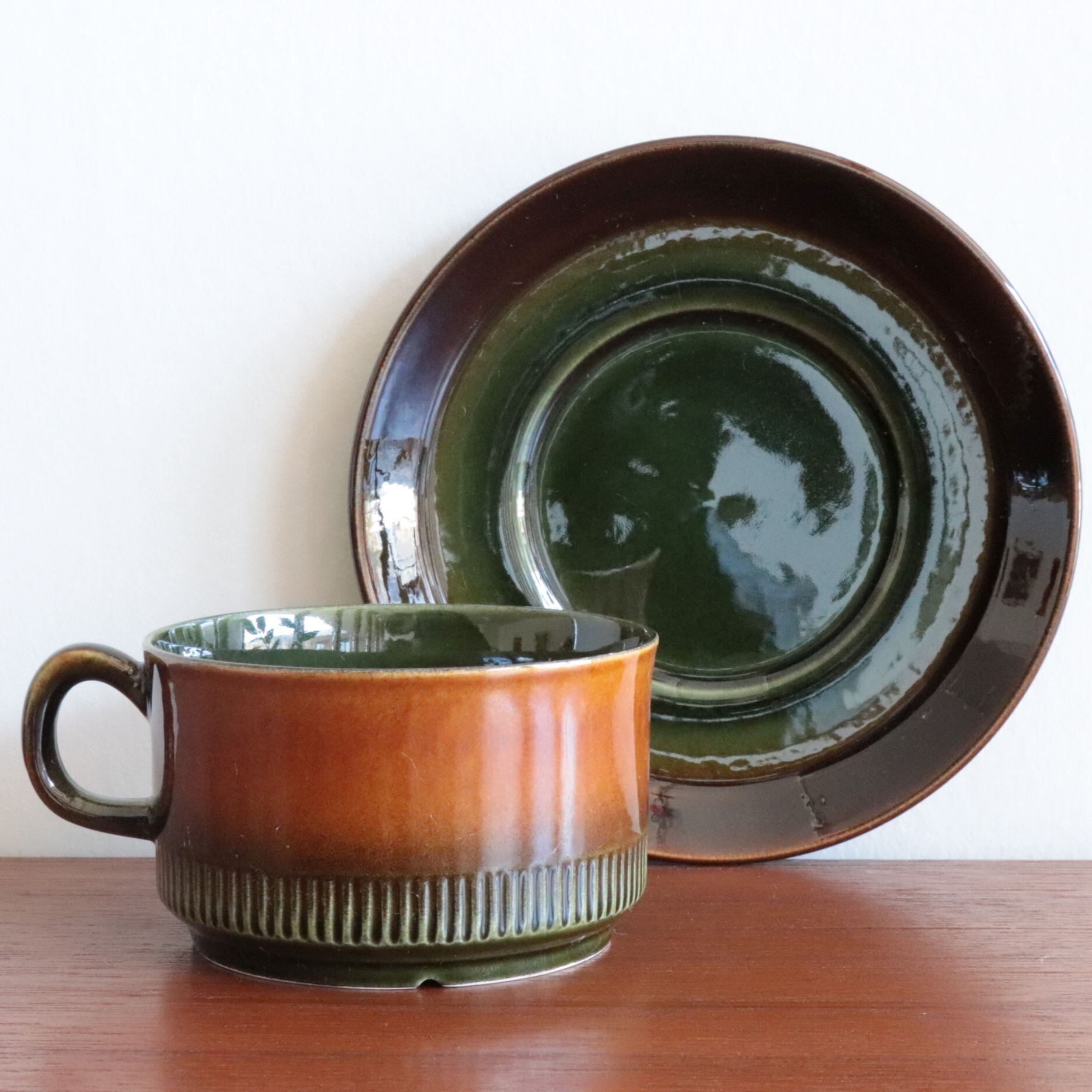 1966〜1977年の間、スウェーデンのGefle(ゲフレ)で製作された Oliv(オリーブ) シリーズ。デザインはBerit Ternell(ベリット・ターナー)によるもので、同社の代表作である Kosmos(コスモス) や Sahara(サハラ) と同じフォルム・装飾構成を持ちながら、配色が異なる希少モデルとして知られています。