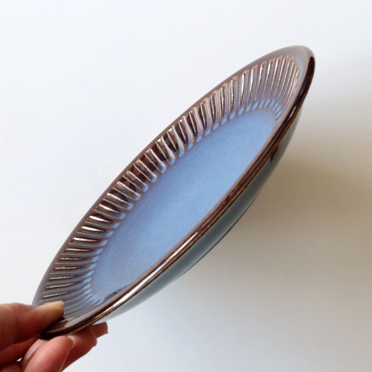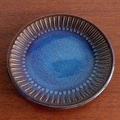 深い光沢のあるブルーを基調に、釉薬の濃淡によって表現された表情が特徴的なデザイン。シンプルながらも存在感があり、また個体によってそれぞれ表情が大きく異なるのも魅力のひとつです。