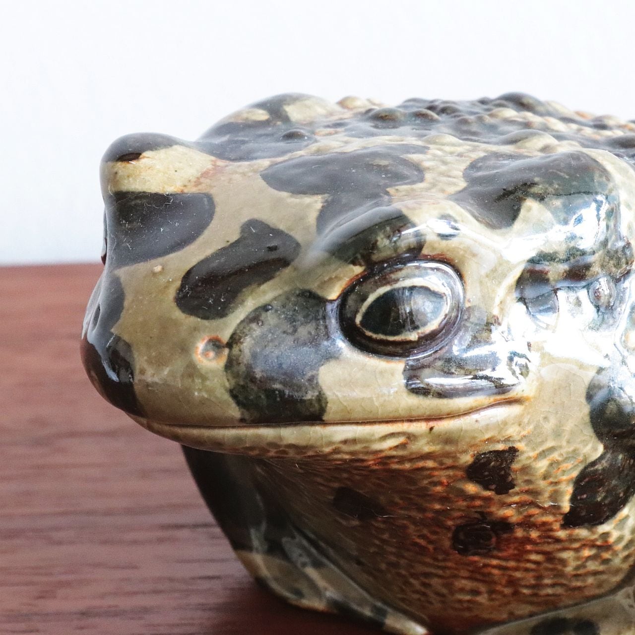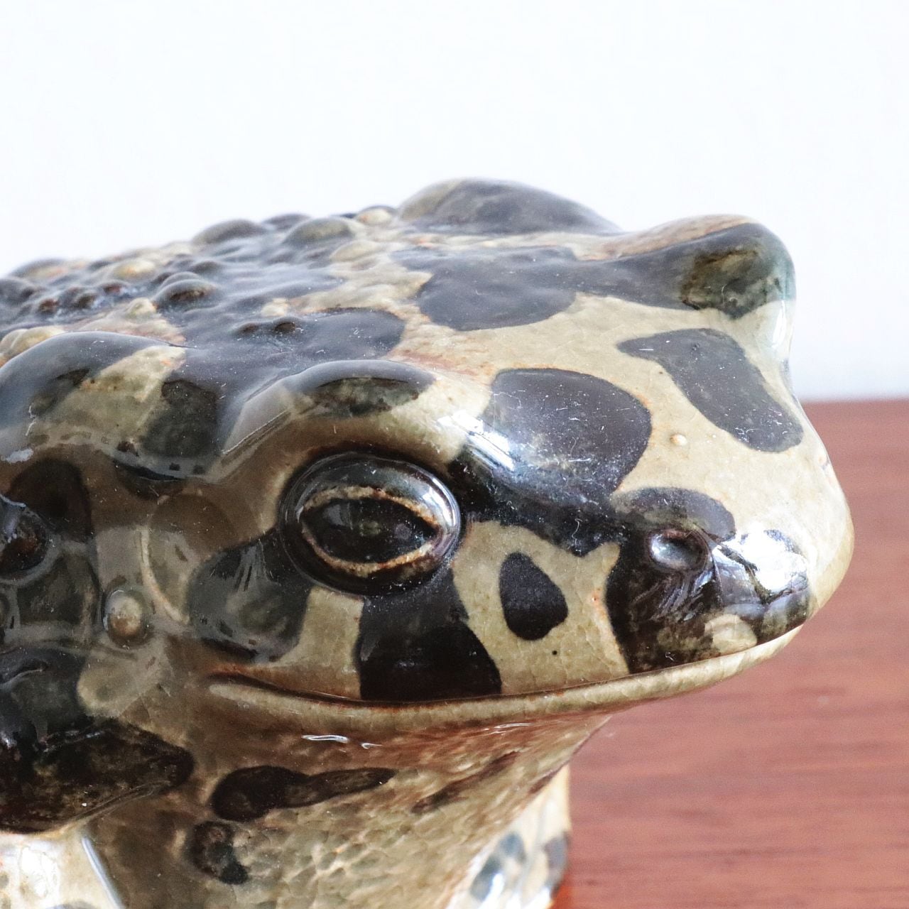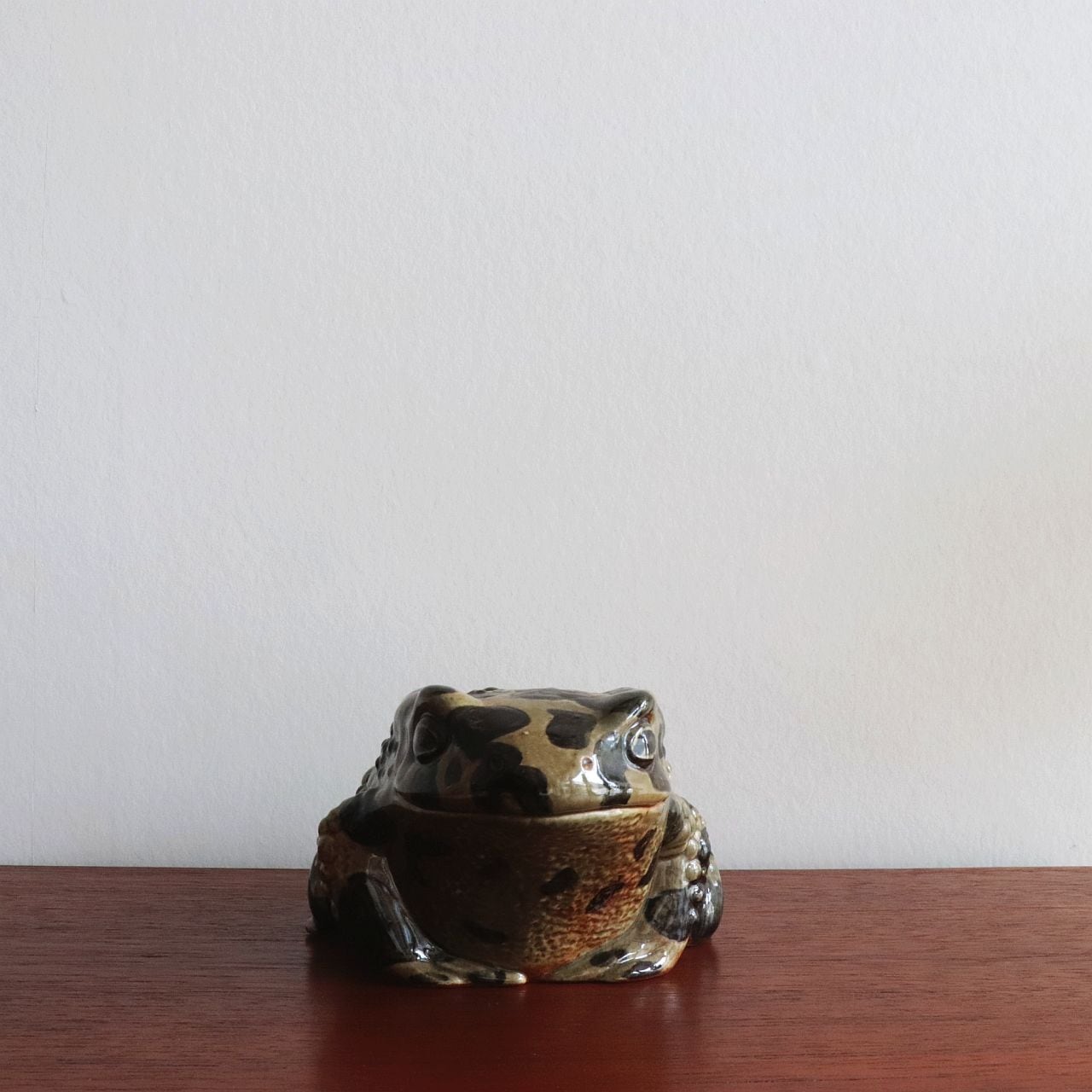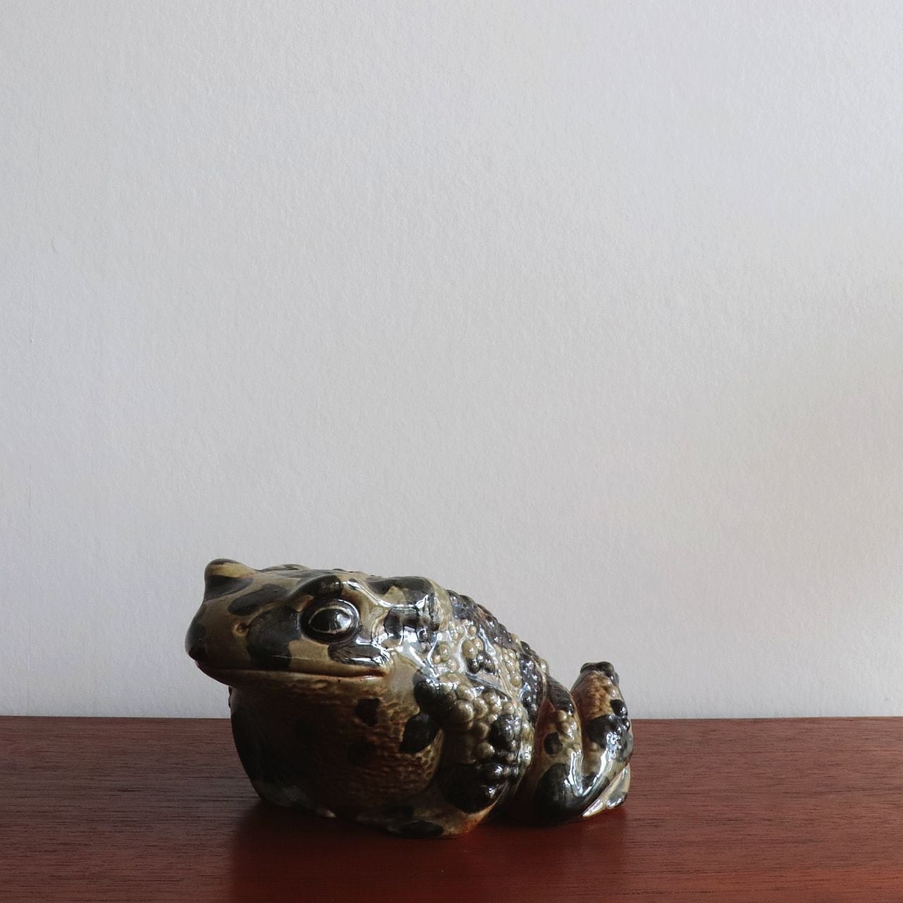 Paul Hoff は、カエル特有の丸みと湿った質感を、炻器ならではの釉薬表現で巧みに再現しています。小さく身を縮めた姿勢や、表面に施された斑点模様は、自然界の生き物としてのリアリティと、グスタフスベリらしい温かみを両立させています。シリーズの中でもユニークな存在で、コレクターからの人気も高いモデルです。