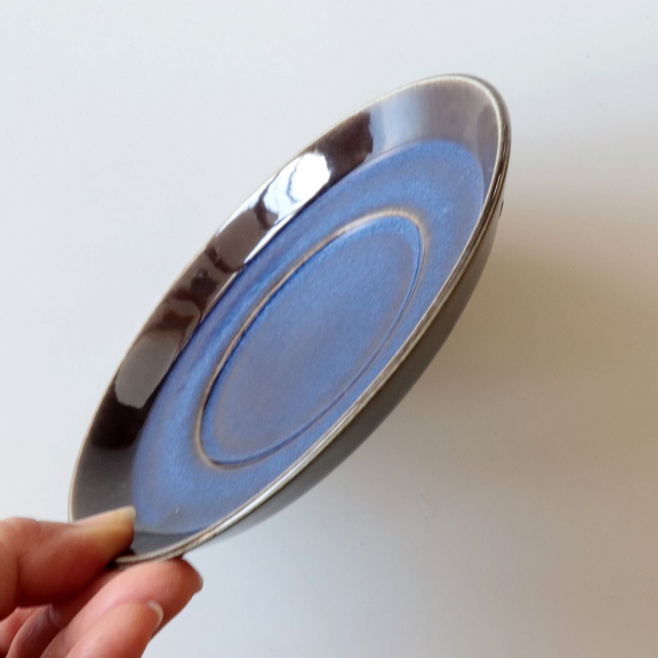 深い光沢のあるブルーを基調に、釉薬の濃淡によって表現された表情が特徴的なデザイン。シンプルながらも存在感があり、また個体によってそれぞれ表情が大きく異なるのも魅力のひとつです。