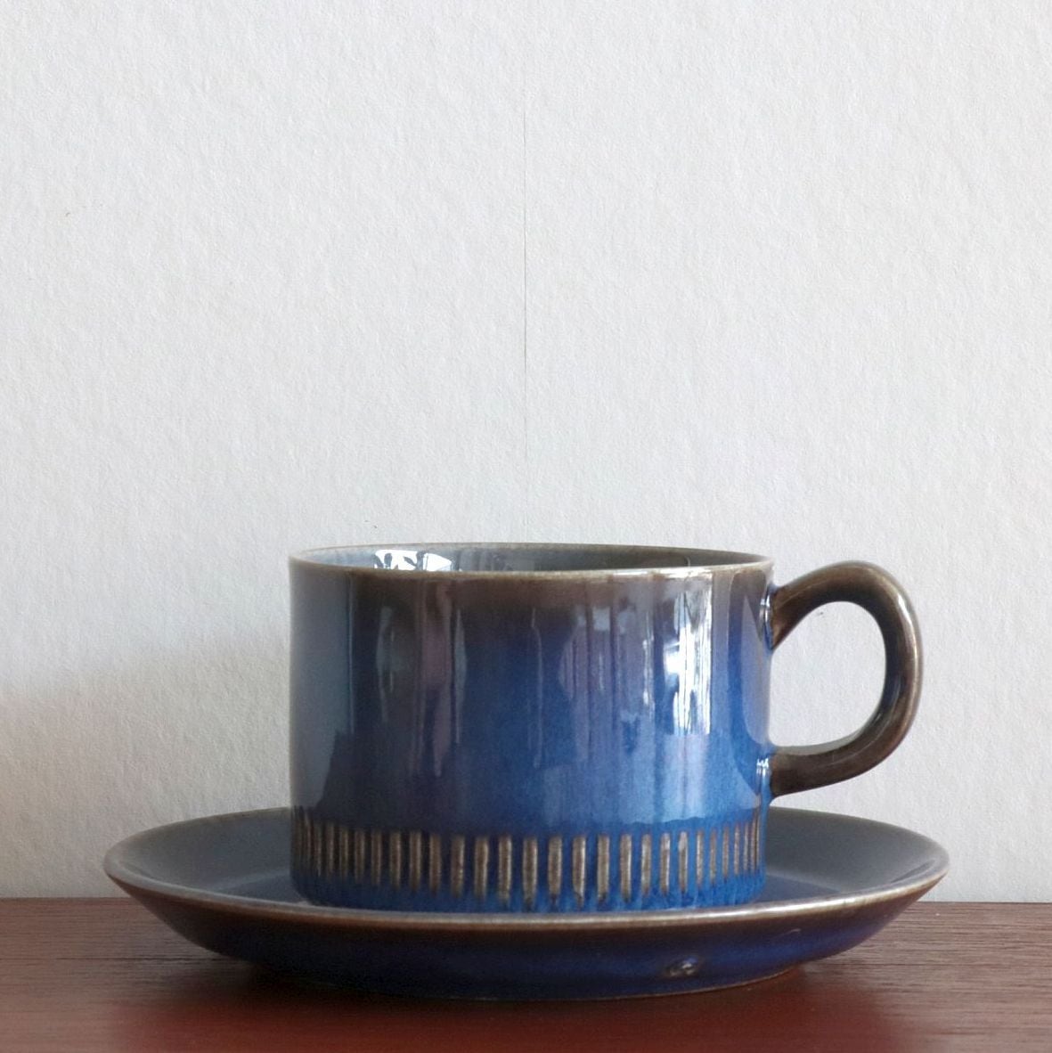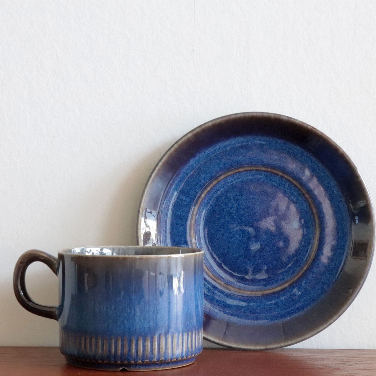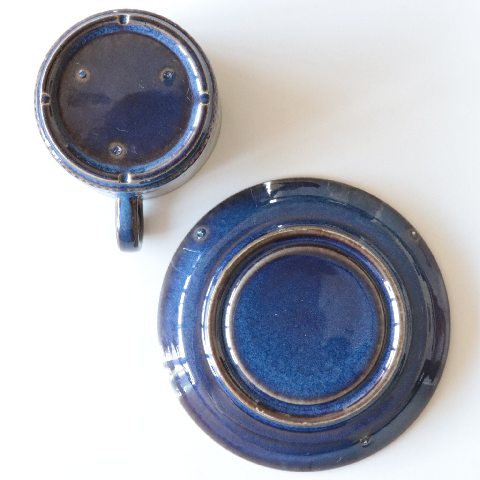 深い光沢のあるブルーを基調に、釉薬の濃淡によって表現された表情が特徴的なデザイン。シンプルながらも存在感があり、また個体によってそれぞれ表情が大きく異なるのも魅力のひとつです。