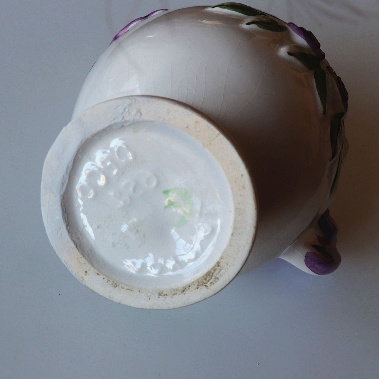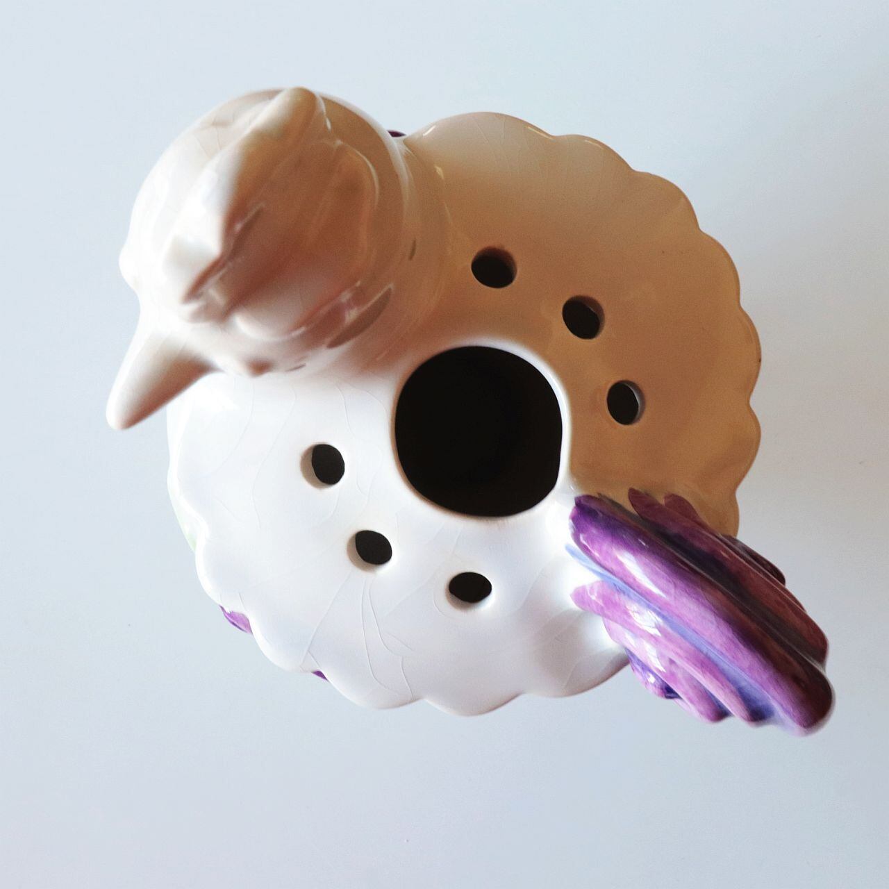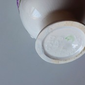 白い陶肌に手描きで彩色された紫やグリーンの花模様が、素朴でありながら華やかさを添えており、北欧らしい優しい空気感をまとった一品。丸みを帯びたフォルムと愛らしい表情が、空間に柔らかなリズムをもたらしてくれます。