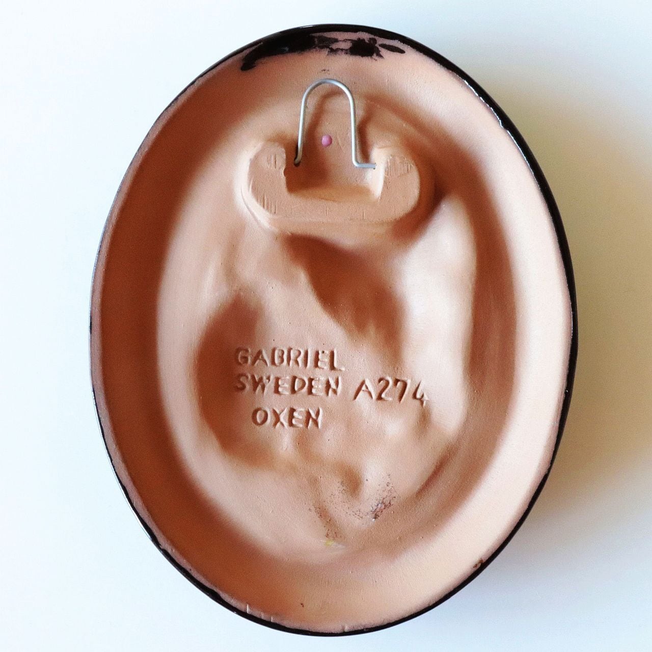 Gabriel Keramikは1925年創業のスウェーデンの老舗陶器メーカーで、1970年代には装飾性の高い壁掛け陶板を数多く手がけました。本作もその流れを汲むもので、裏面には壁掛け用の金具が付属しており、インテリアとしても気軽に取り入れられる仕様です。