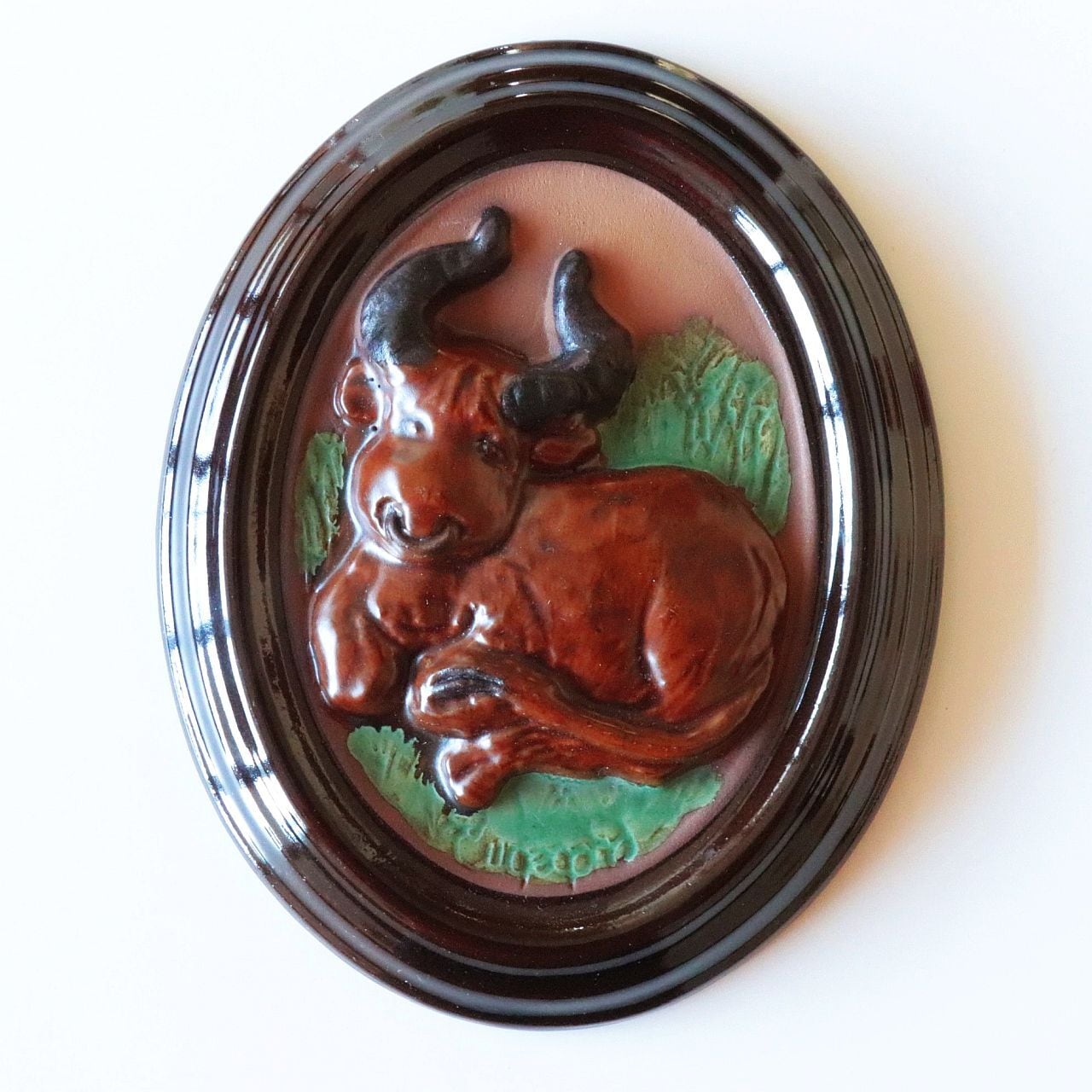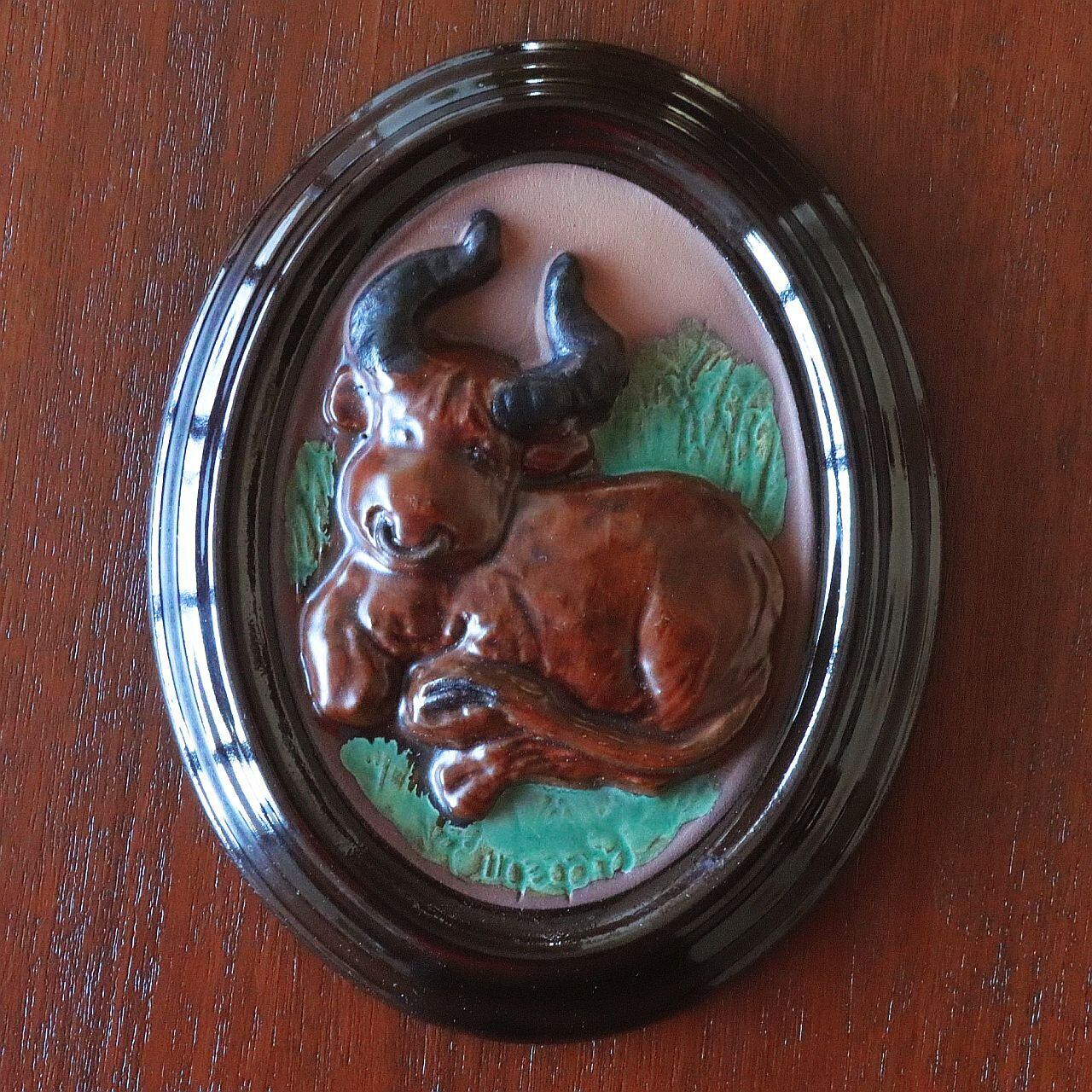 スウェーデンの陶器メーカーGabriel Keramik(ガブリエル・ケラミック)によって1970年代に製作された、星座モチーフの陶板シリーズのひとつ。こちらは12星座のうち、牡牛座(Taurus)をモチーフにした作品です。