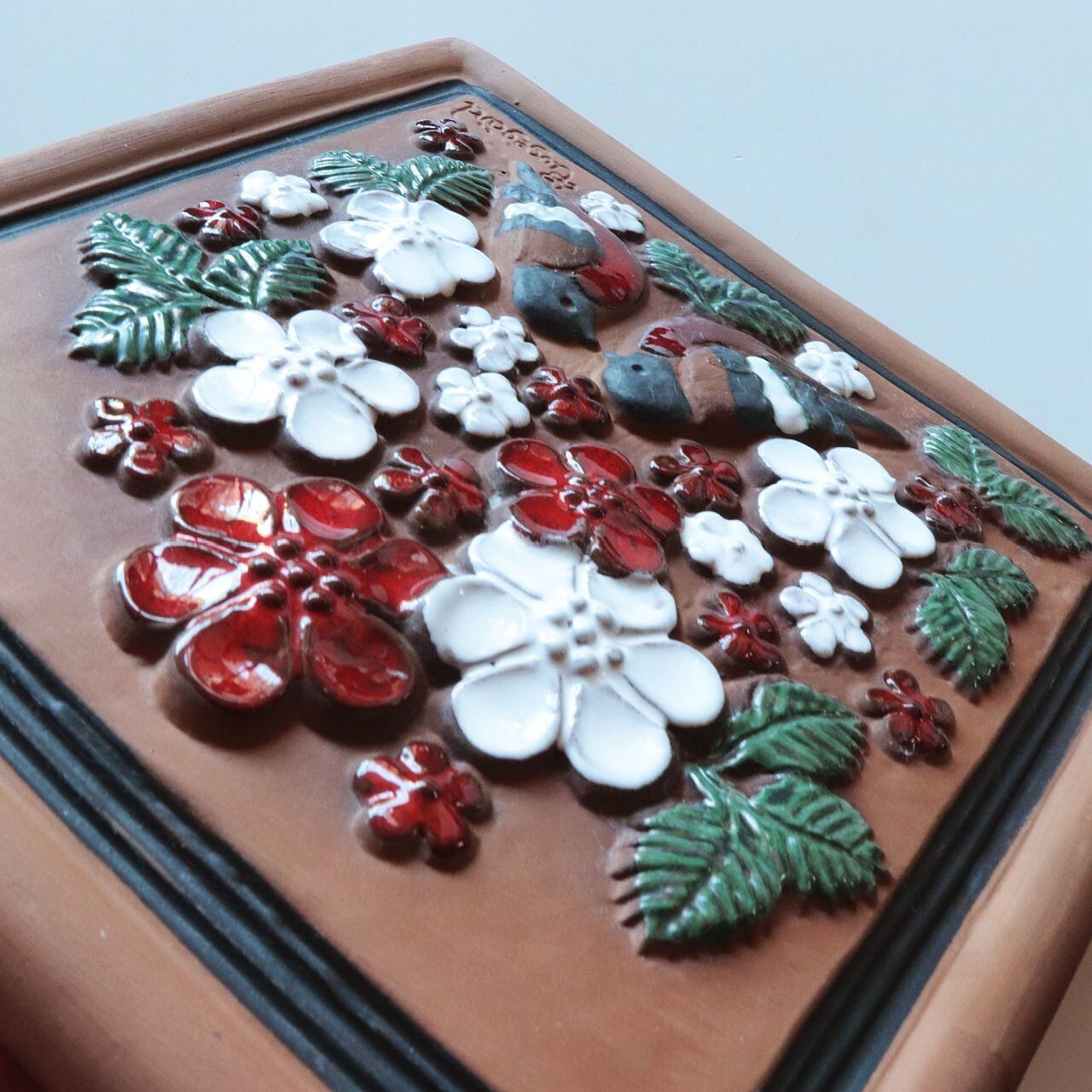 【c8181】花とウソの陶板(23cm) [Gabriel Keramik / Sweden]