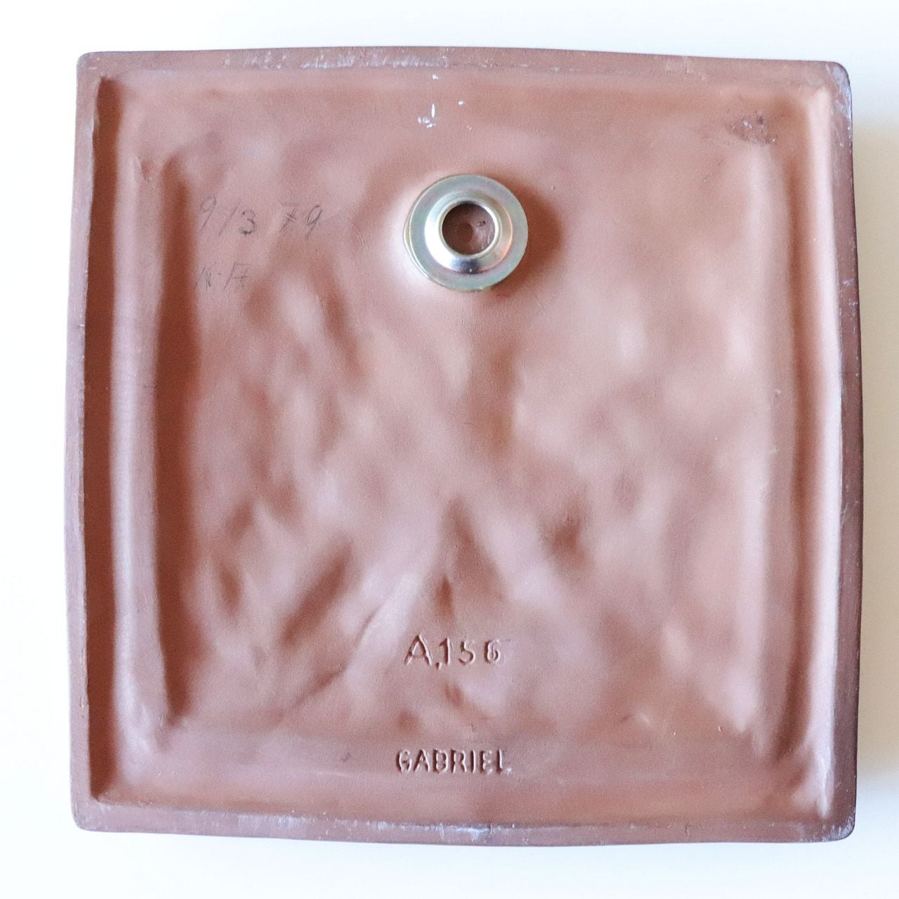 Gabriel Keramikは1925年創業の老舗陶器メーカーで、1970年代にはこうした装飾陶板を数多く手がけ、家庭の壁を彩るアートピースとして人気を博しました。本作もその流れを汲むもので、裏面には壁掛け用の金具が付属しており、すぐに飾ってお楽しみいただけます。