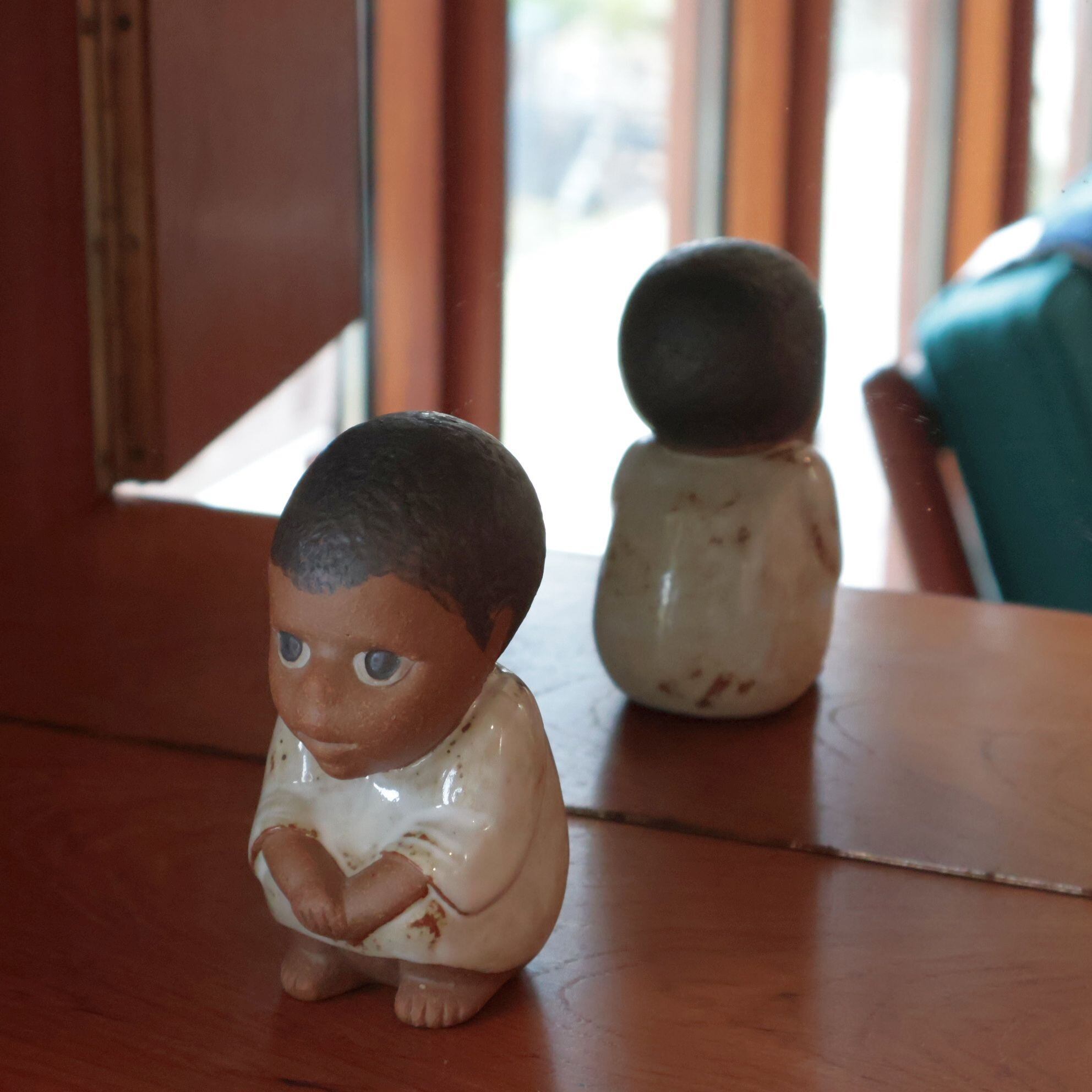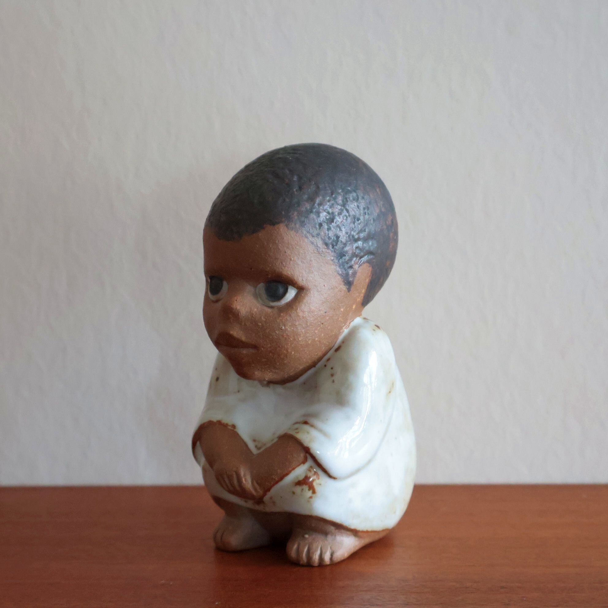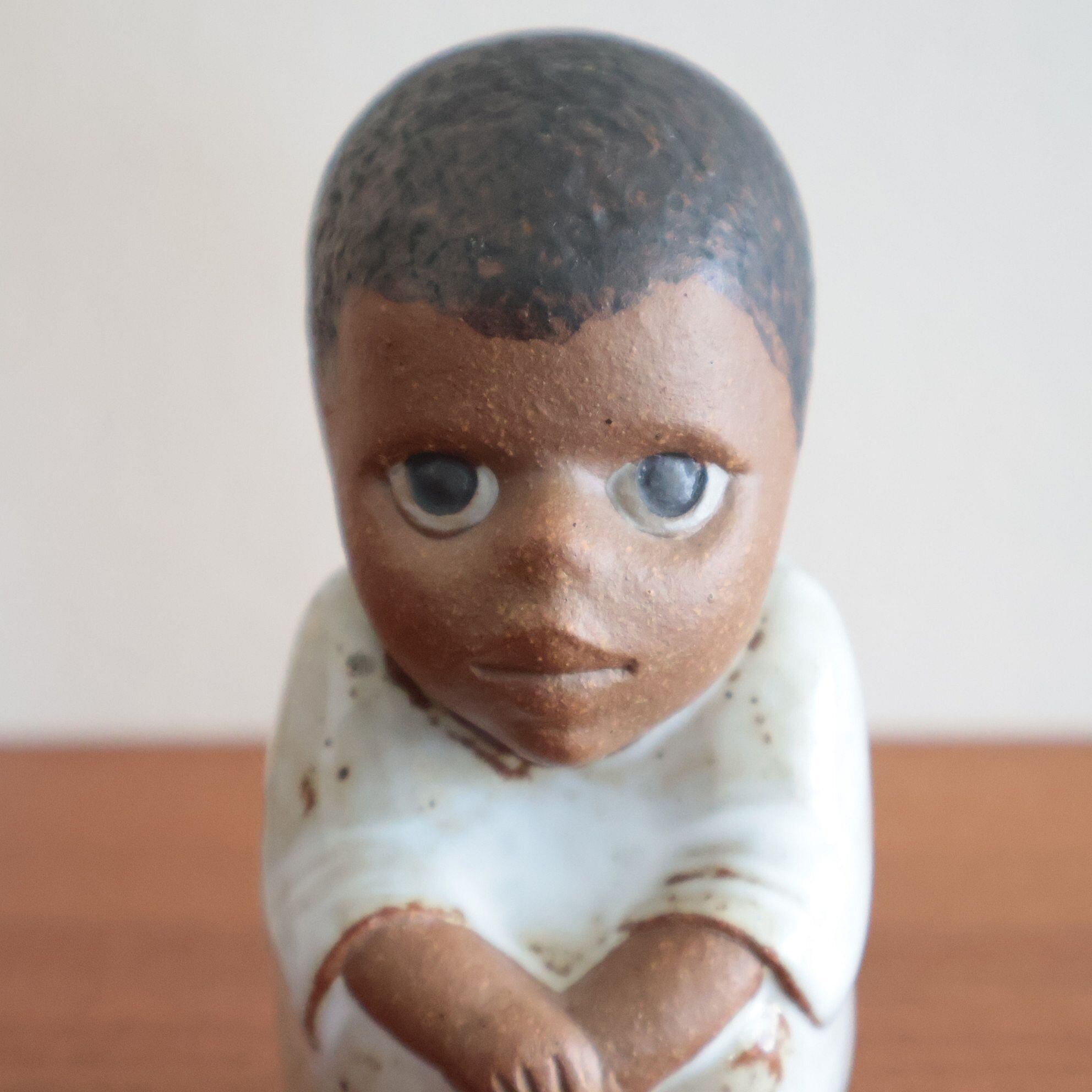 それぞれ伝統的な服装をしており、その地域らしい生活の様子を切り取ったリサ・ラーソン作品の中でも高い人気を誇ったシリーズとなります。南のこどもは理知的な顔立ちをした黒人の子供。白い服をまとい、穏やかな表情で座る姿が描かれています。
