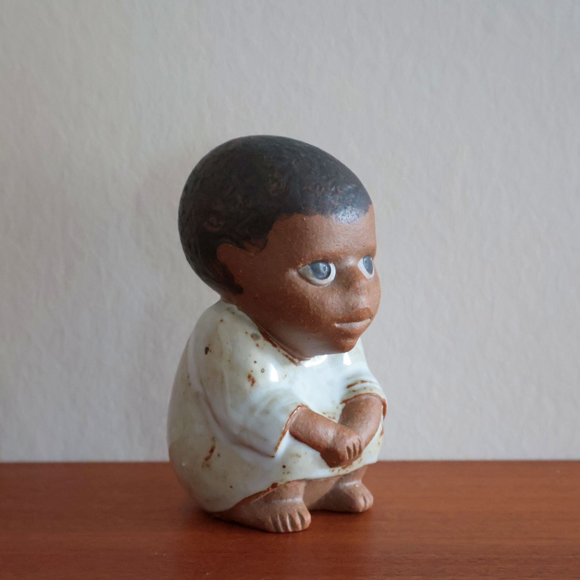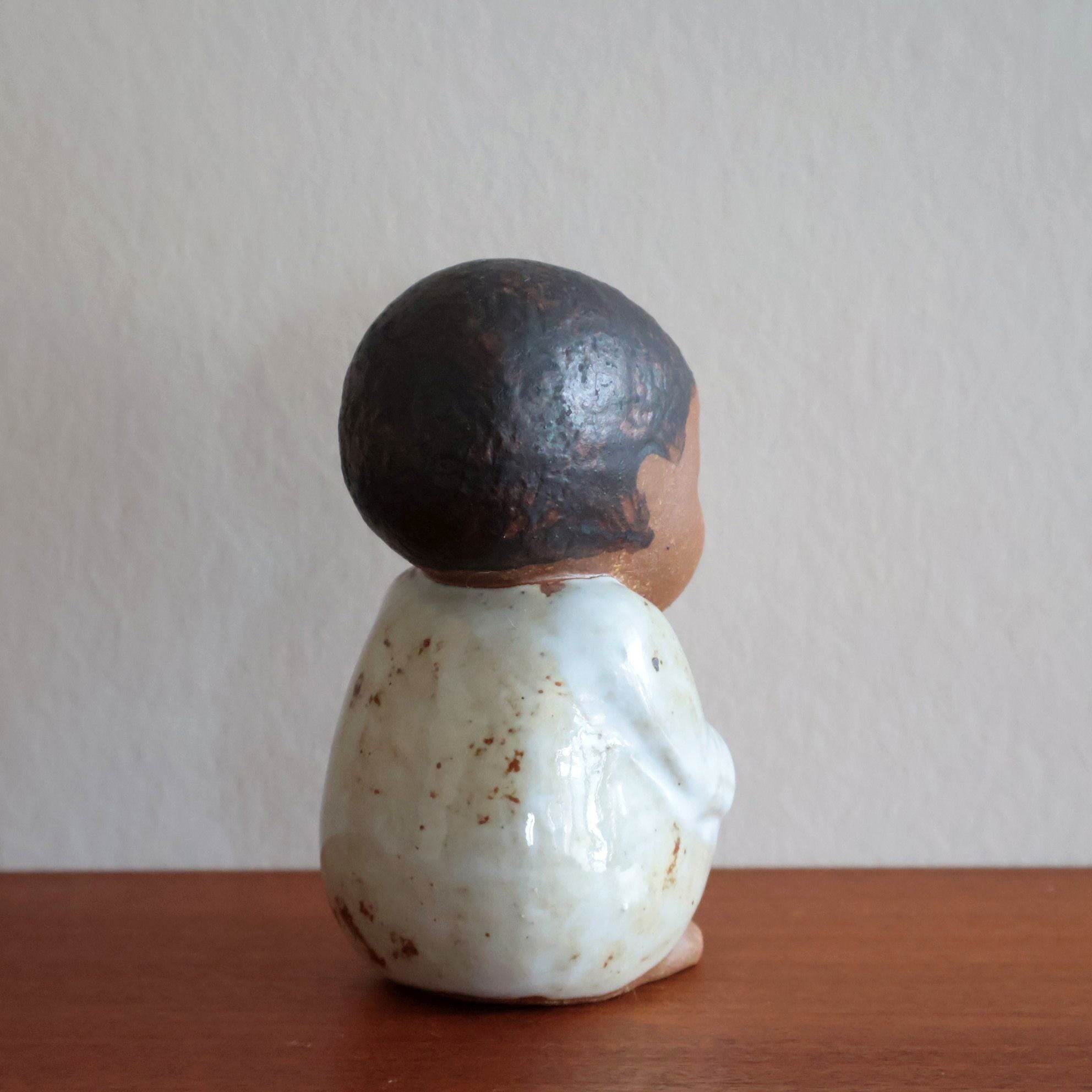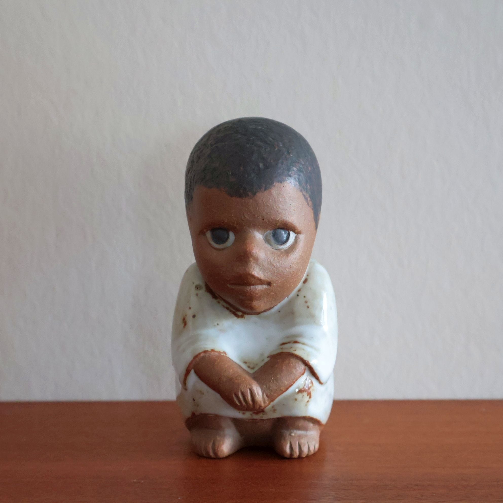 それぞれ伝統的な服装をしており、その地域らしい生活の様子を切り取ったリサ・ラーソン作品の中でも高い人気を誇ったシリーズとなります。南のこどもは理知的な顔立ちをした黒人の子供。白い服をまとい、穏やかな表情で座る姿が描かれています。