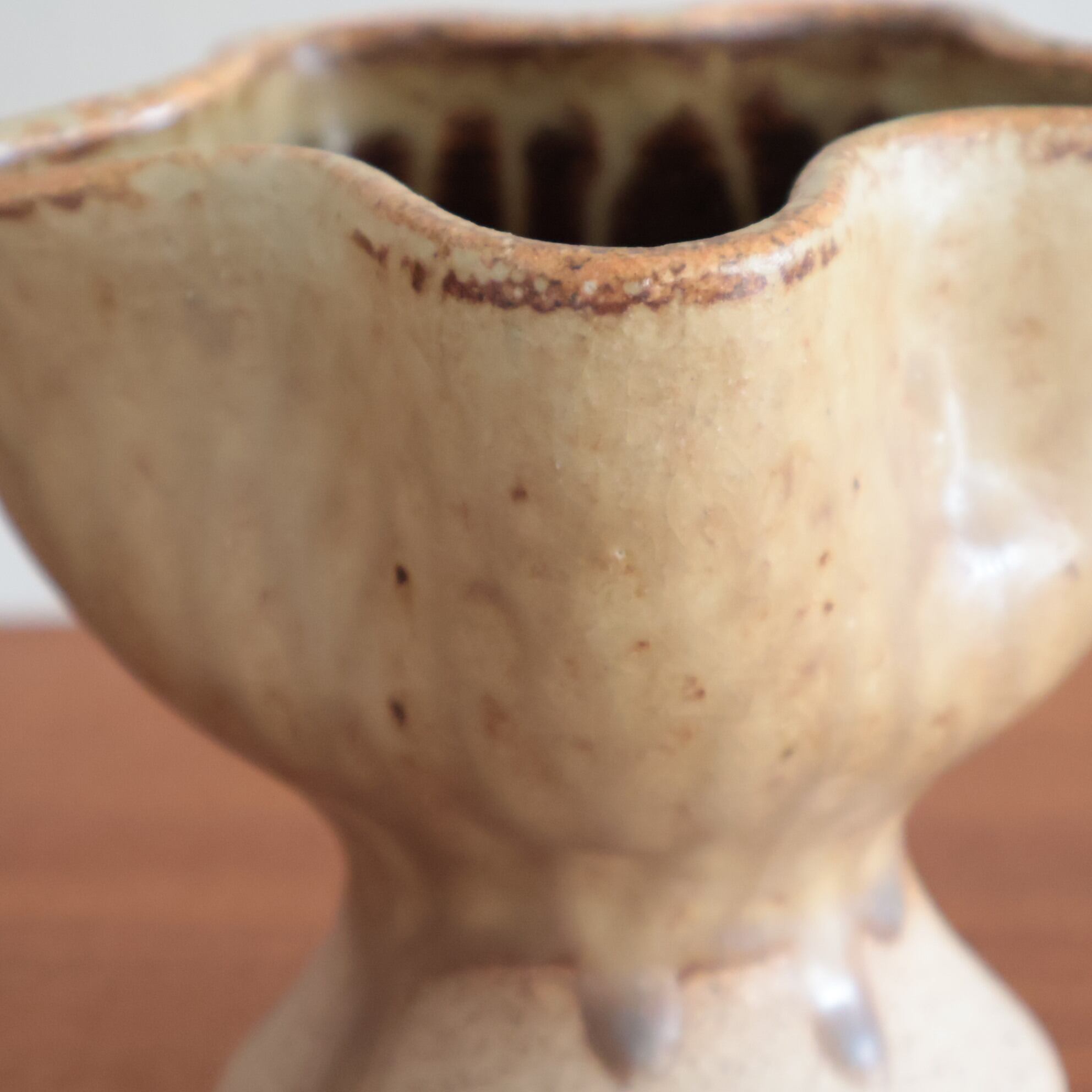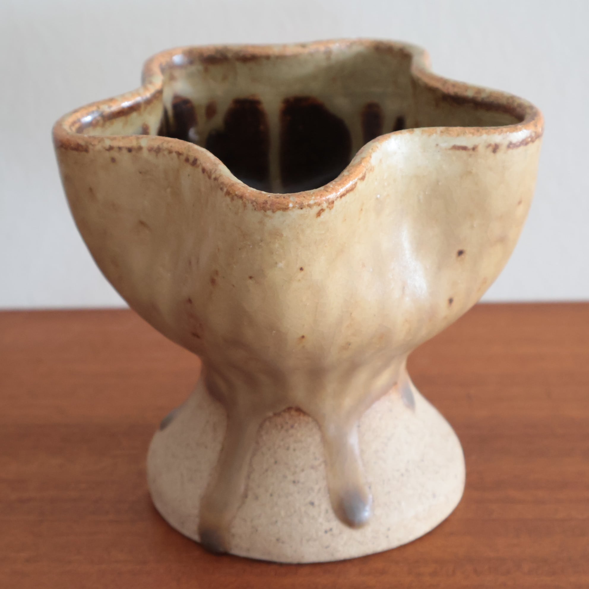 こちらは星のかたちをした陶器のボウル/ベース。 丸みのあるフォルムと素朴な釉薬が、どこか親しみやすく、見る人の心を和ませます。 オブジェとしても、花器や小物入れとしても楽しめる、暮らしにやさしく寄り添う一点です。