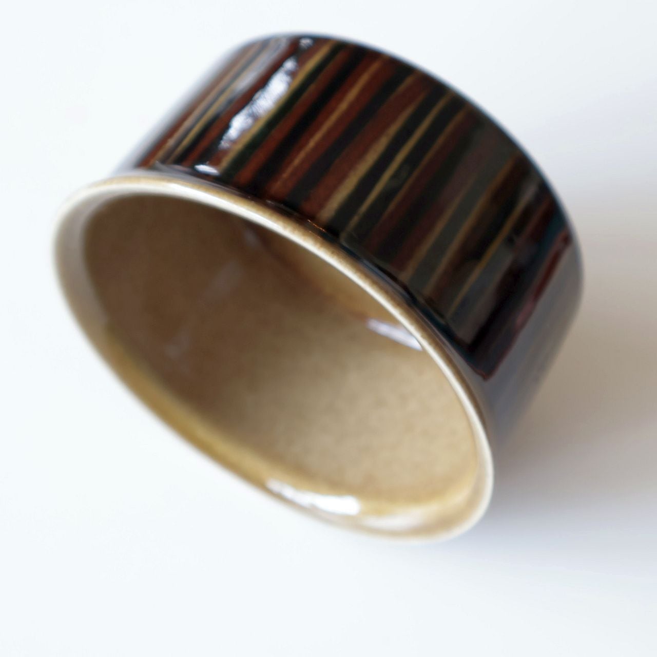 ステンシル印刷と釉薬で描かれた表情は輪郭がはっきりとしておらず、曖昧な表情が穏やかで美しい作品です。