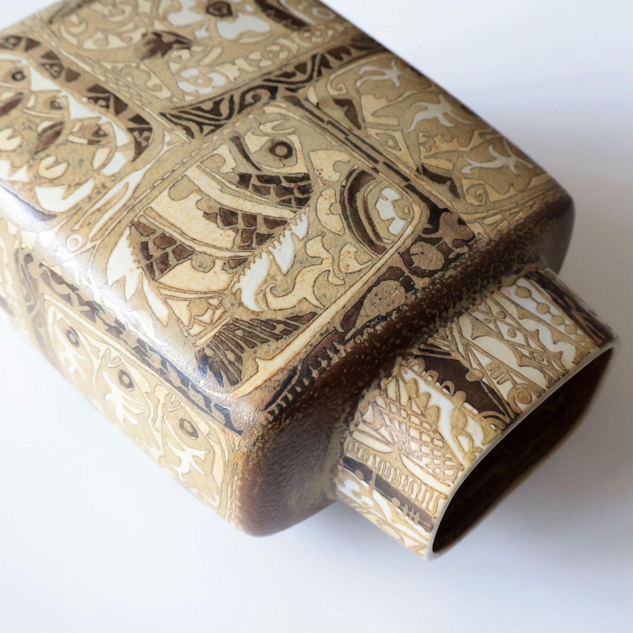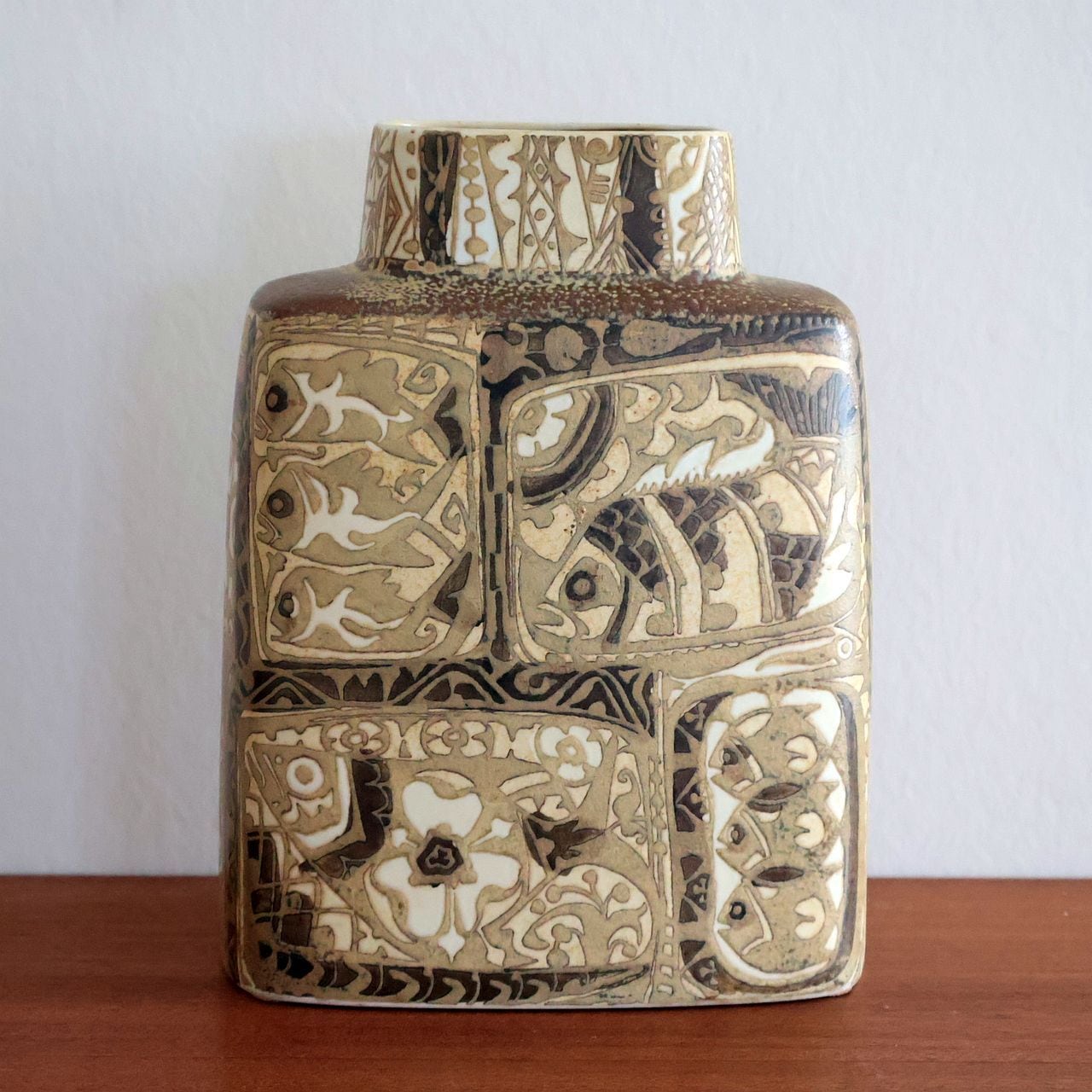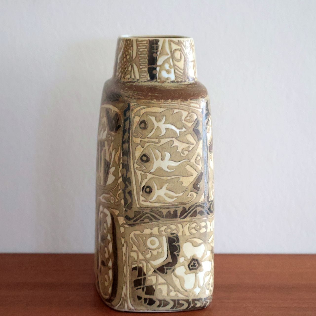 1965年から1980年代にかけて、デンマークのRoyal Copenhagen(ロイヤルコペンハーゲン)で製作されたBACA(バッカ)シリーズ。デザインは当時アートディレクターを務めていたNils Thorsson(ニルス・トーソン)によるものとなります。製造は当時、同社の親会社でもあったAluminia(アルミニア)工場で行われ、同工場が得意としていた 1000℃前後の比較的低温で焼成されるファイアンス焼成によって製作されています。この焼成方法により磁器のような硬質さとは異なり、やや柔らかく温かみのある陶肌に仕上がるのが特徴です。