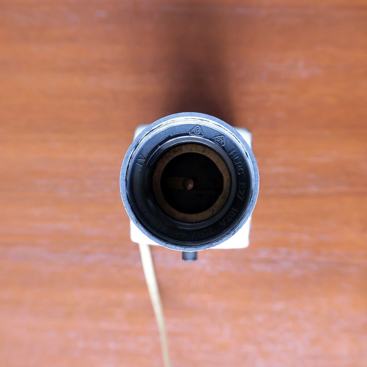 日本国内用にコンセントプラグを交換後、通電テストを行っております。ソケットはEXX、LED電球をご利用いただけます。(画像はLED/40W使用)