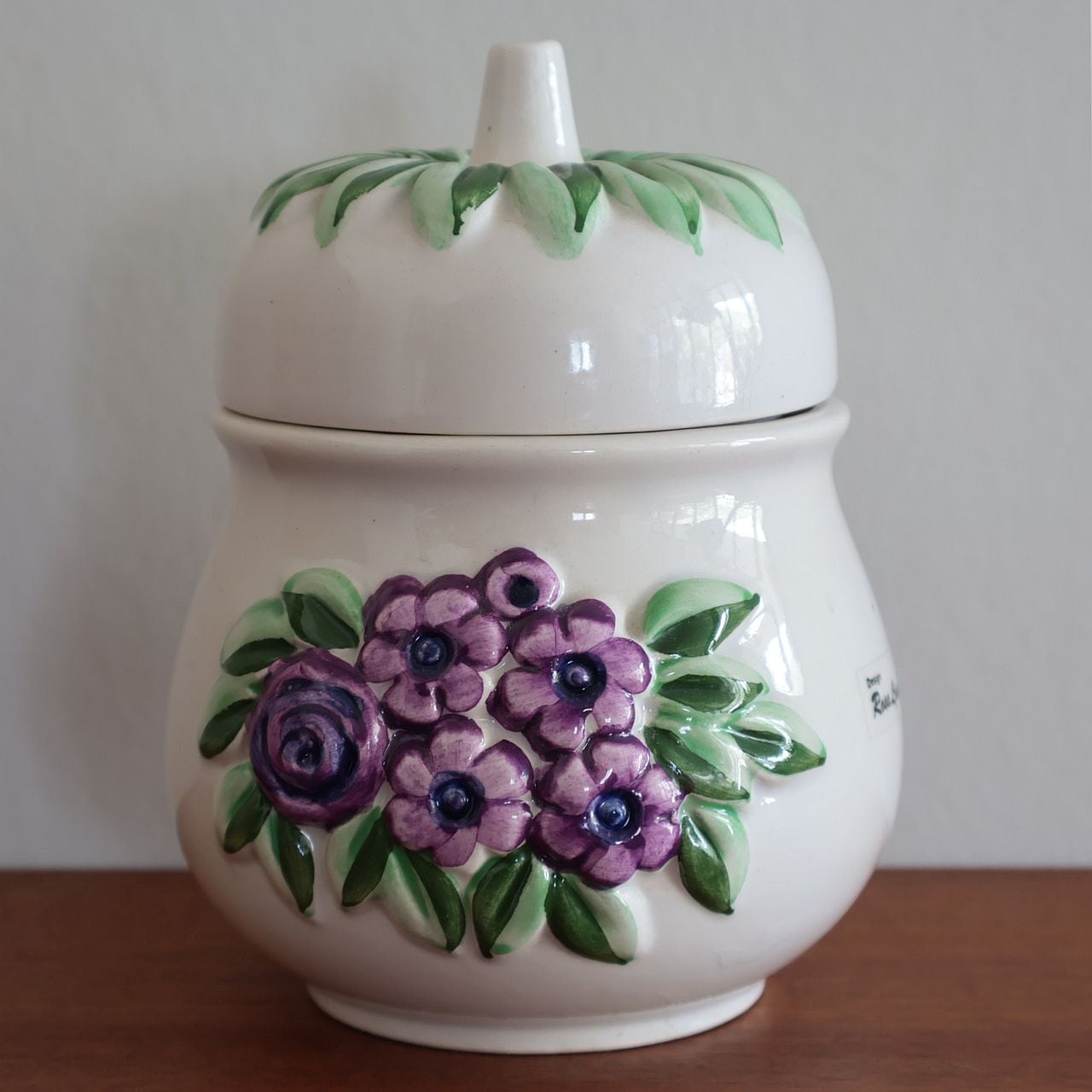 ふっくらとしたフォルムに、立体的な花のレリーフがあしらわれた愛らしいデザイン。釉薬の艶やかな質感と、素朴で温かみのある造形が調和し、空間にやさしいアクセントを添えてくれます。