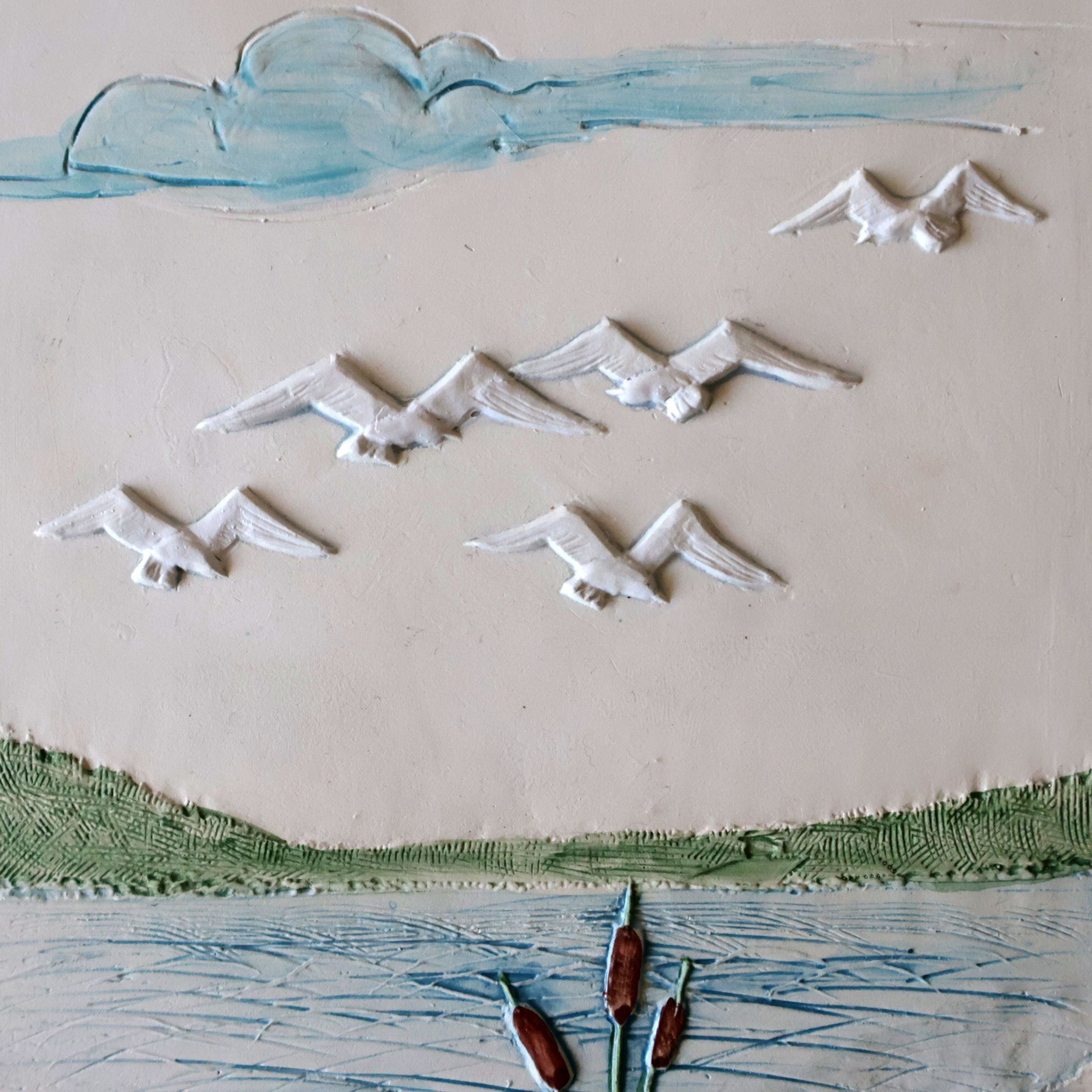 【c8201】カモメの陶板(25㎝) [Jie Gantofta / Sweden]