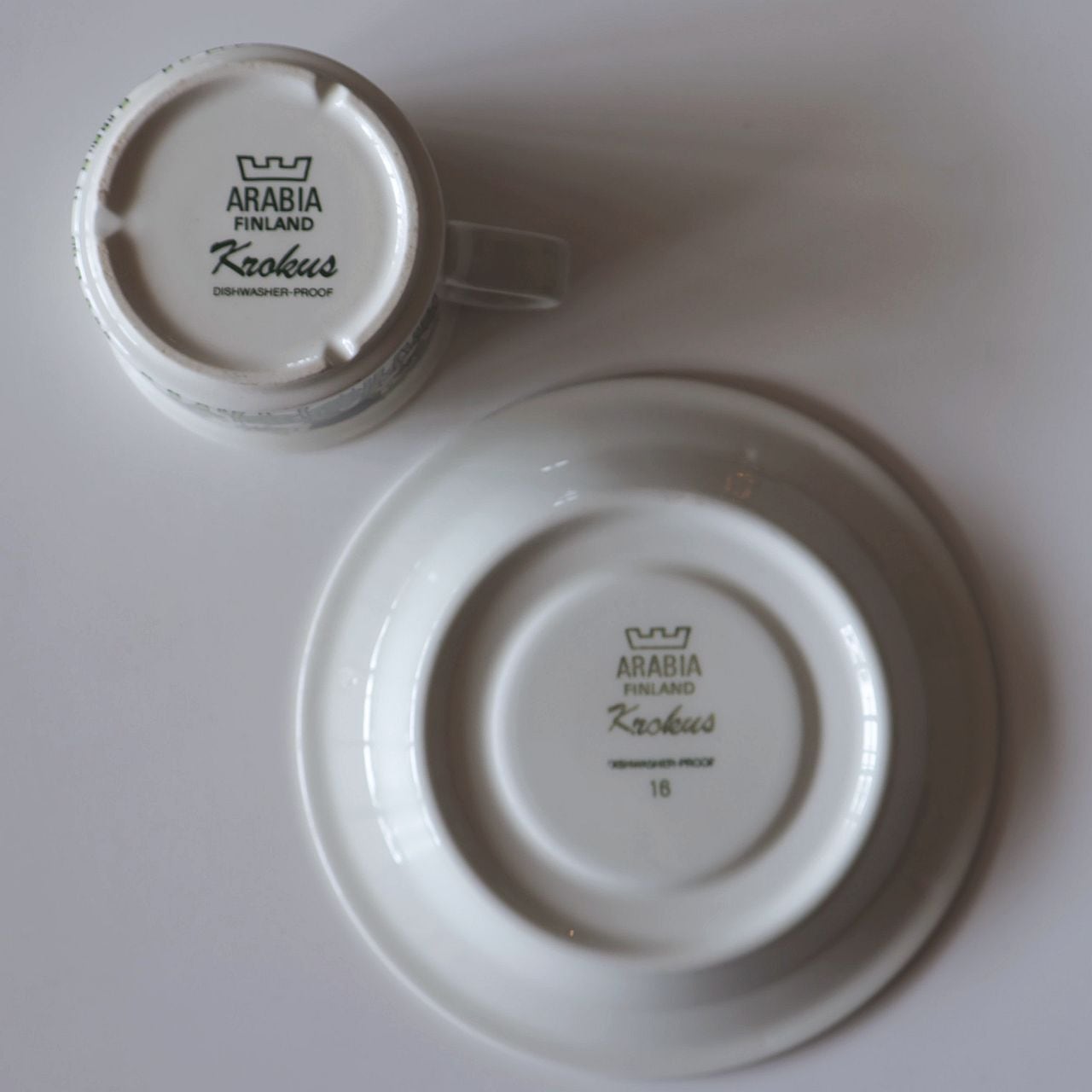 白黒のモノトーンと、グリーン系のカラーと2パターンがデザインされています。 北欧の春を告げるクロッカスはデザインとしても人気のある柄で、生産年数が限定的という事もあり市場に出回る機会も多くないアイテムです。 2022年、違ったフォルムデザインでマグ、ボウル、プレートがリプロダクトされています。