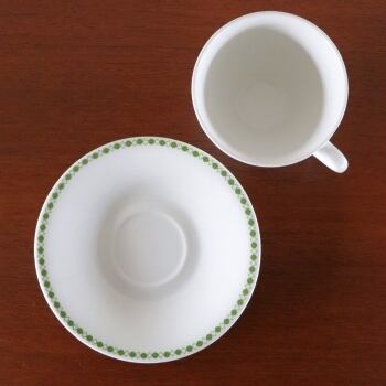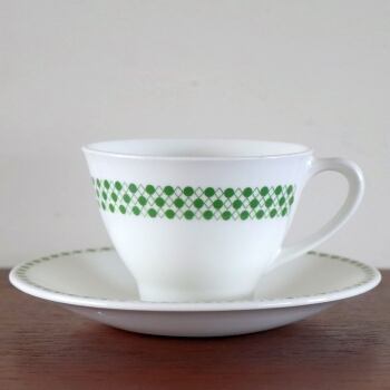 グリーンのドットとフォルムが特徴的なFiggjoのカップ&ソーサー。1980年代頃のものと思われます。