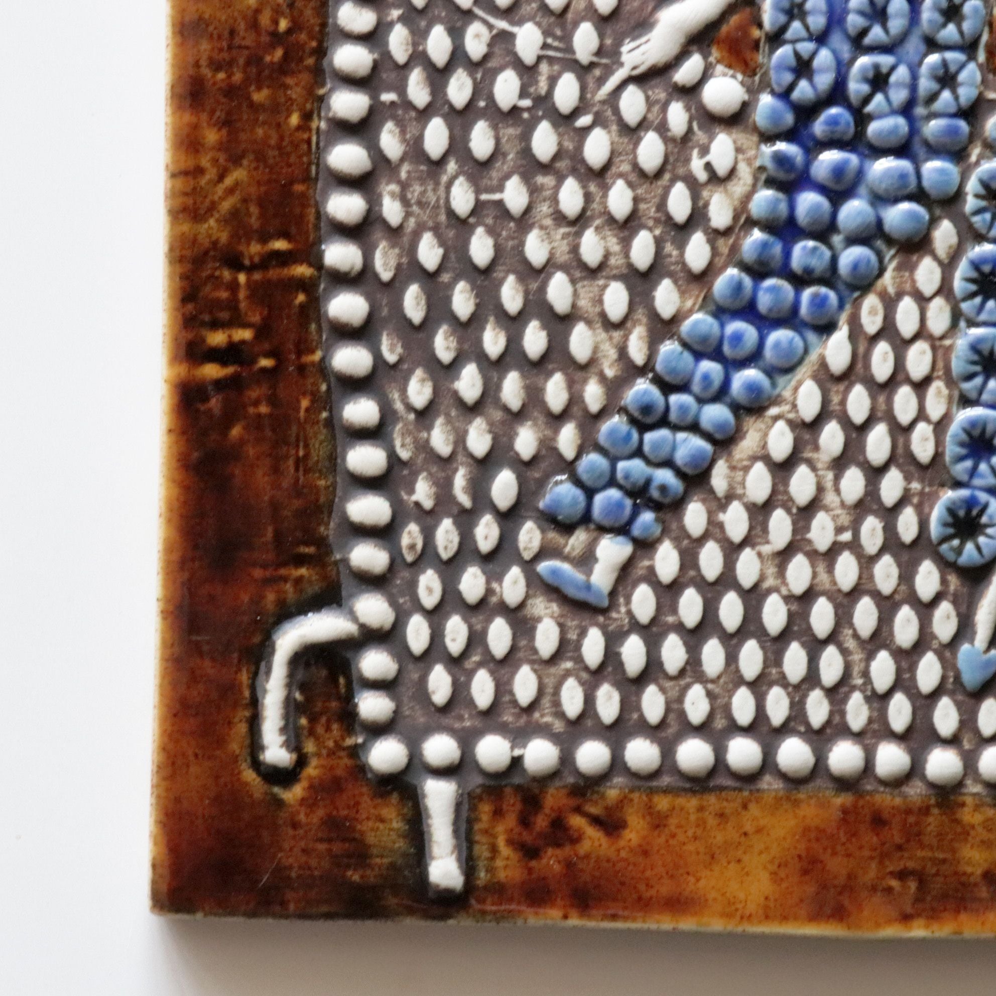 基準となる大まかなカラーあるものの、当時は製作基準がファジーであった事もあり色の展開は複雑で、多様な色の組み合わせで製作されています。そのため同じモチーフでも全く異なった表情となる陶板も多く、届く度に異なる表情も魅力的なシリーズです。