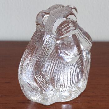 Royal Krona Sweden(ロイヤルクローナ)で製作された、リサ・ラーソンがデザインしたサルのオブジェ。 のほほんとしたサルの表情はとても愛らしく、いかにもリサラーソンらしい仕上がりです。見ざる、言わざる、聞かざる、動かざるの4猿のうちの1点。