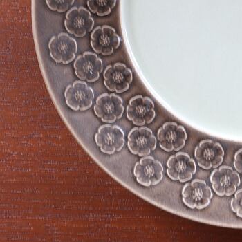 イエンス・クイストゴーデザインによるUmbra(Brown Azur)。 1957年にKronjydenから製作が始まりました。 エンボスで表現された杏の花の可愛らしいモチーフでありながら 落ち着いた色合いが甘すぎない柔らかさでとても良い雰囲気です。