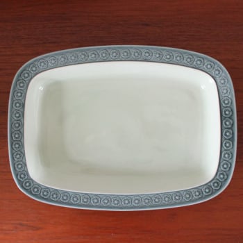 イエンス・クイストゴーデザインによるBlue Azur。 1957年にKronjydenから製作が始まり、その後Nissen・B&Gと製造が続いた人気のシリーズです。 エンボスで表現された杏の花の可愛らしいモチーフでありながら 落ち着いた色合いが甘すぎない柔らかさでとても良い雰囲気です。