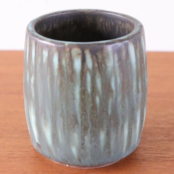 グンナー・ニールンド(1904-1997)によるデザインのカップ。フラワーベースとして使用しても良いですし、 日本の湯呑みとも似た寸法のため、同じような使い方をしてもよさそうです。 グンナー・ニールンドは日本や中国の古陶を取り寄せ研究をしており、民藝にも大きく影響を受けた作品を残しておりこちらもそのうちの一つです。 瑠璃色の吸い込まれるような美しい釉薬をしています。