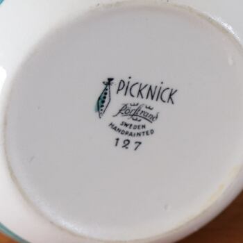 ロールストランドを代表するデザイナー、マリアンヌ・ウェストマン(Marianne Westman)がデザインしたピクニック。 1956年に発表され、1969年まで製作が続いたシリーズです。 スウェーデンの食卓に出る野菜が全面に描かれ、華やかで可愛らしいデザインです。陶器だけでなく、その後ファブリックなどさまざまなプロダクトにも転用された現在でも人気の高いモチーフです。