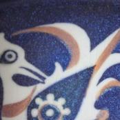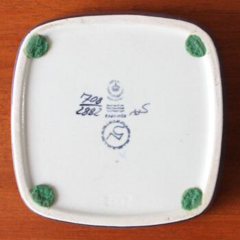 大胆な柄が眼を引く、royalcopenhagenの"BACA"シリーズ ミニトレイ。Nils Thorsson(ニルス・トーソン)デザインによるもので、1960年代-70年代に製作されたヴィンテージです。 素焼きと釉薬の絶妙なグラデーションと繊細なペイントデコレーションが特徴的です。表面に淡い貫入(写真5)があります。