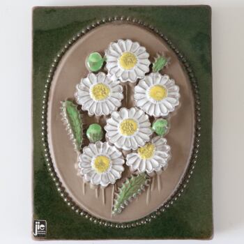 スウェーデンの陶器会社ジィガントフタ(jie gantofta)製の陶板。同社が得意とする花の陶板で、スウェーデンを中心とする様々な花が描かれたシリーズ作品です。 壁掛けが出来るよう背面に紐が通せる穴が開いています。※背部にチップがあります。目立つものではなくまた表面からは見えませんが、価格はそれを考慮したものとなります。