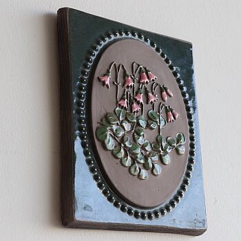 スウェーデンの陶器会社ジィガントフタ(jie gantofta)製の陶板。同社が得意とする花の陶板で、スウェーデンを中心とする様々な花が描かれたシリーズ作品です。 壁掛けが出来るよう背面に紐が通せる穴が開いています。