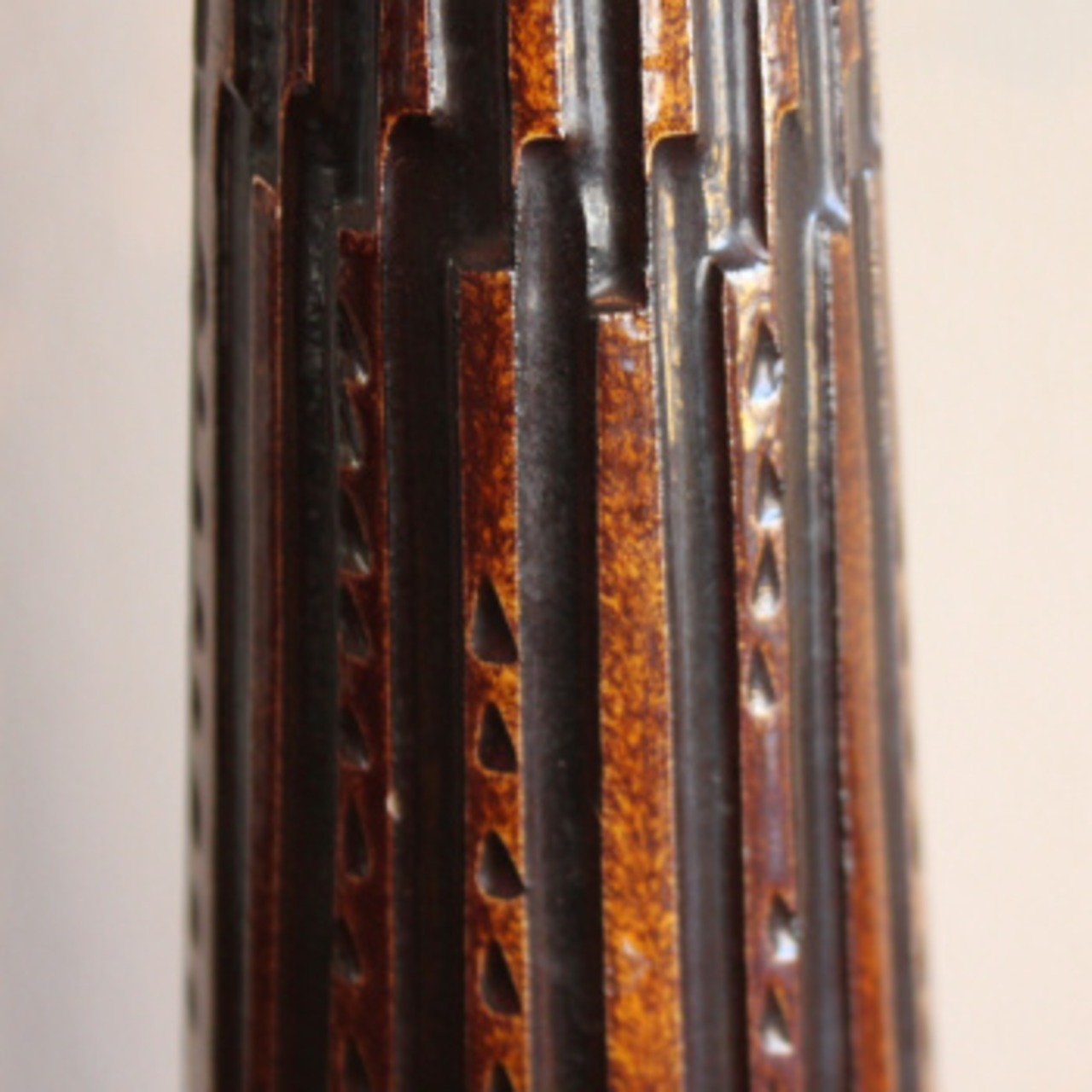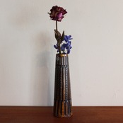 1960年代、スウェーデンのUpsala Ekebyで製作されたフラワーベース。 Ingrid Atterbergデザインによるもので、シリーズ名『Nevada』となります。 1962-64年製造とごく短い期間政策されたもので、素地を削りリズムを奏でるようなフォルムはみる者をひきつける力強さがあります。