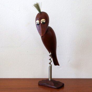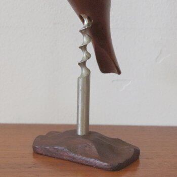 チーク材で製作された鳥の栓抜き。ワインのコルク抜きが内蔵されています。1960-70年代のデンマーク製となります。