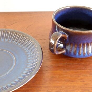1966-77年の間、スウェーデンのGefleで製作されたコスモス(Kosmos)シリーズ。 ベリット・テーネル(Berit Ternell)がデザインを手がけています。 夜空のように流れる青が特徴的で、釉薬の表情によりそれぞれの仕上がりが変わるのも人気のひとつです。