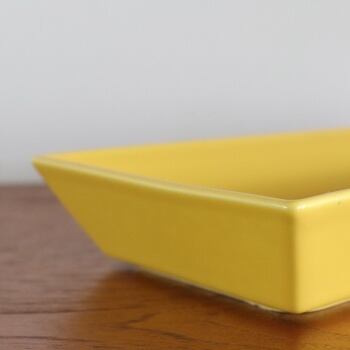 フィンランドのアラビアで1990年代に製作されたABCシリーズ。ABC=Arabia Basic Ceramikの意味で、Pekka Harni(ペッカ・ハルニ)によりデザインされました。 この独特のフォルムをしていますがもともとは3種類の四角形から製作されており、組み合わせて使うことも視野に入れたデザインでした。 ABCは一度廃盤となりますが形状を変え、Neroシリーズとして新しく生産が始まります。写真のイエロー(Lサイズ)はABCシリーズのみに使用されたカラーとなります。