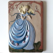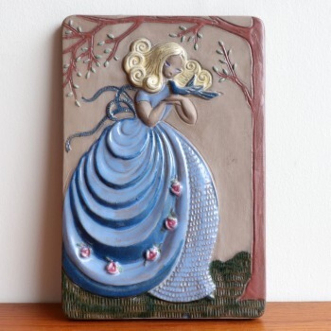 青い鳥と少女の陶板(20cm)* / Edit Risberg [Jie gantofta/Sweden]
