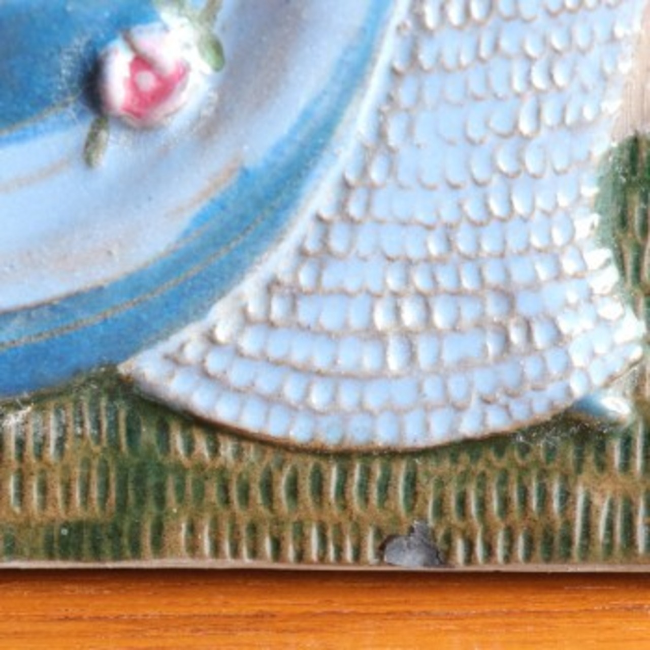 スウェーデンの陶器会社ジィガントフタ(jie gantofta)製の陶板。 Edit Risbergによりデザインされた生産数が限られた「青い鳥と少女」が描かれた作品です。 壁掛けが出来るよう背面に紐が通っています。