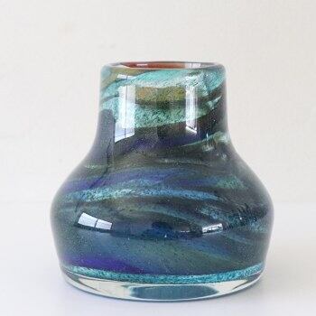 スウェーデンのJohansfors(ヨハンスフォース)社でガラスデザインを担当していたベンクト・ウールプ。 幾何学的形状と強いコントラストの作品が多い中で、こちらは色が溶けあった水のうねりのような曖昧な世界観が美しいベースです。背面にカットサインが入っています。