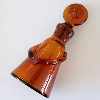エリックホグランのデザインの代表作、ボトルシリーズのデカンタ(デキャンタ)。 蓋である顔はトレイと同じく型による押しだしによって製作され、瓶である胴体部分は拭きガラスで製作されています。 顔は型押しにより作られ、体は吹きガラスの手法にて成型されています。表現の妙である気泡は上品に、流水のようなイメージで現れています。