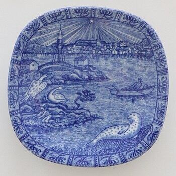 スウェーデンRorstrandで製作されたイヤープレート。 Gunnar Nylund(グナー・ニールンド)によって手掛けられたシリーズで、「ニルスの不思議な旅」をモチーフとしています。 背面にはプレートをつるすための穴が開いています。