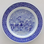 スウェーデンRorstrandで製作されたイヤープレート。 同国で牧歌的な画家として著名なCarl Larsson(カール・ラーソン)の原画を元に「母の日」と名付けられてデザインされたものの一つです。 飾り絵皿として使用が出来るよう様に製作されています。
